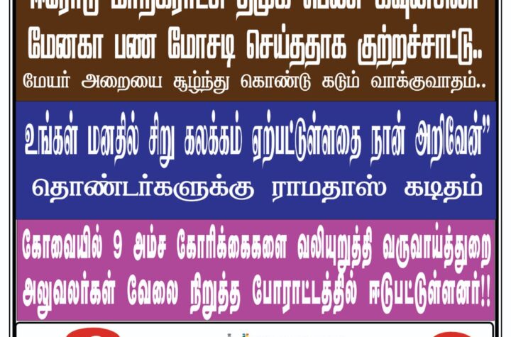 மேயர் அறையை சூழ்ந்து கொண்டு கடும் வாக்குவாதம்.. ஈரோடு. பிப் 26 ஈரோடு மாநகராட்சி பெண் கவுன்சிலர் ஒருவர்...