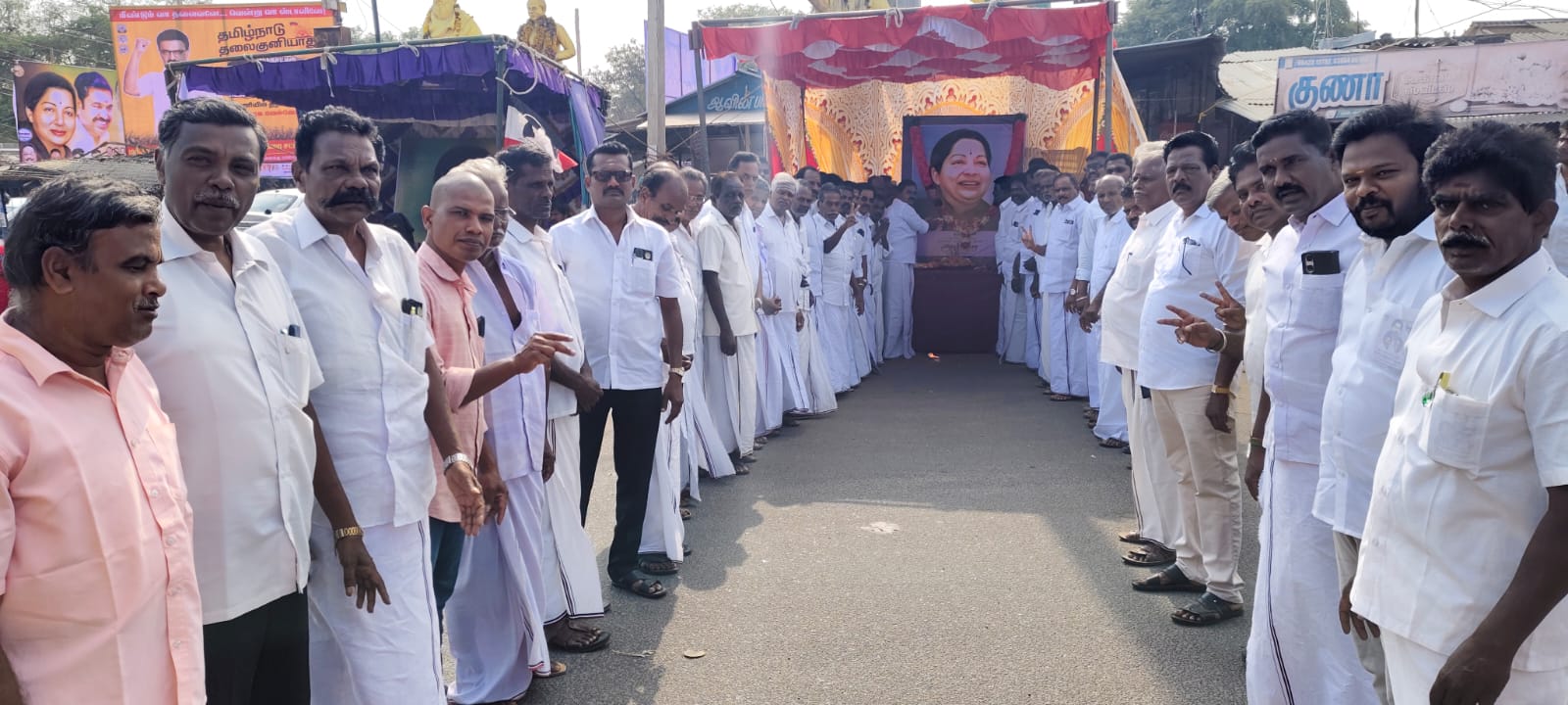 மத்தூர் ஒன்றியச் செயலாளர் க. சக்கரவர்த்தி அவர்கள் தலைமை தாங்கி, ஜெயலலிதா அவர்களின் திருவுருவப் படத்திற்கு மாலை அணிவித்து மரியாதை செலுத்தினார்.
