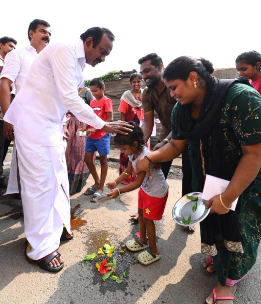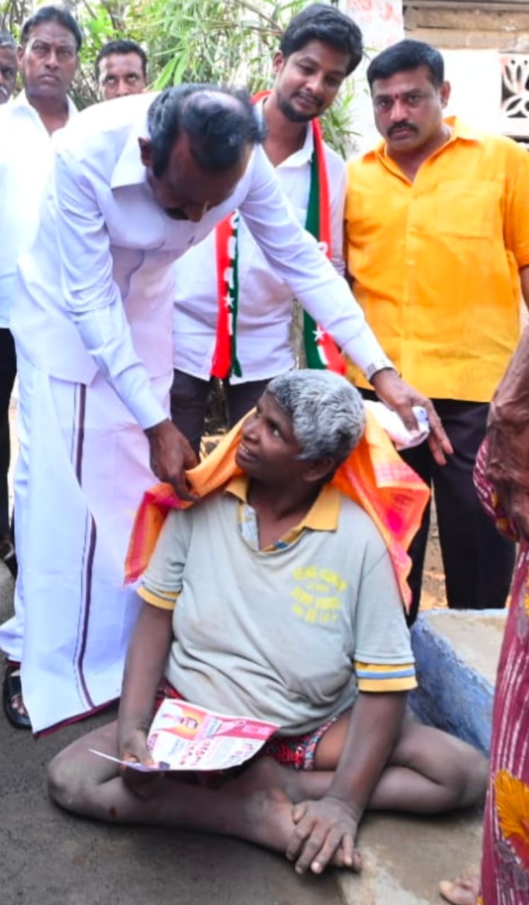 அதேபோல் அப்பகுதியில் இருந்த ஊனமற்ற ஒருவருக்கு பொன்னாடை அணிவித்து அன்போடு நலம் விசாரித்ததும் அப்பகுதி மக்களிடையே மகிழ்ச்சியை ஏற்படுத்தியது.