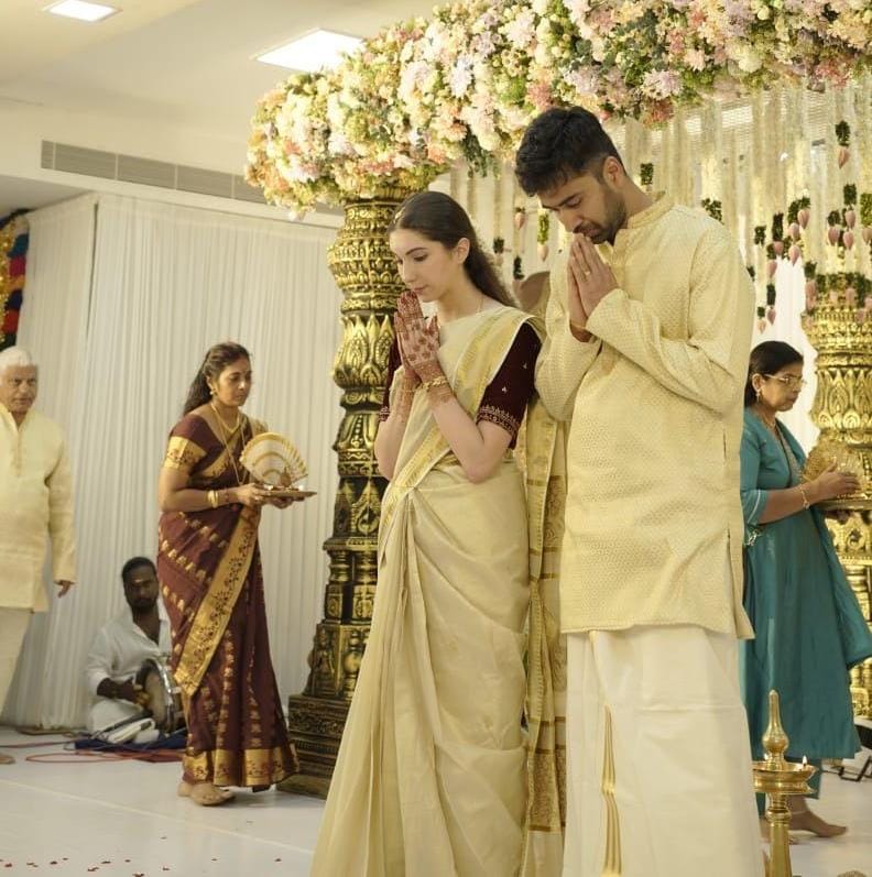 இதனை தொடர்ந்து இரு வீட்டாரின் சம்மதத்துடன் இந்தியா வந்த இருவருக்கும் கோவை கே.ஜி.சாவடி பகுதியில் உள்ள ஹார்மனி. சம்மிட் கன்வென்ஷன் அரங்கில் திருமணம் நடைபெற்றது..