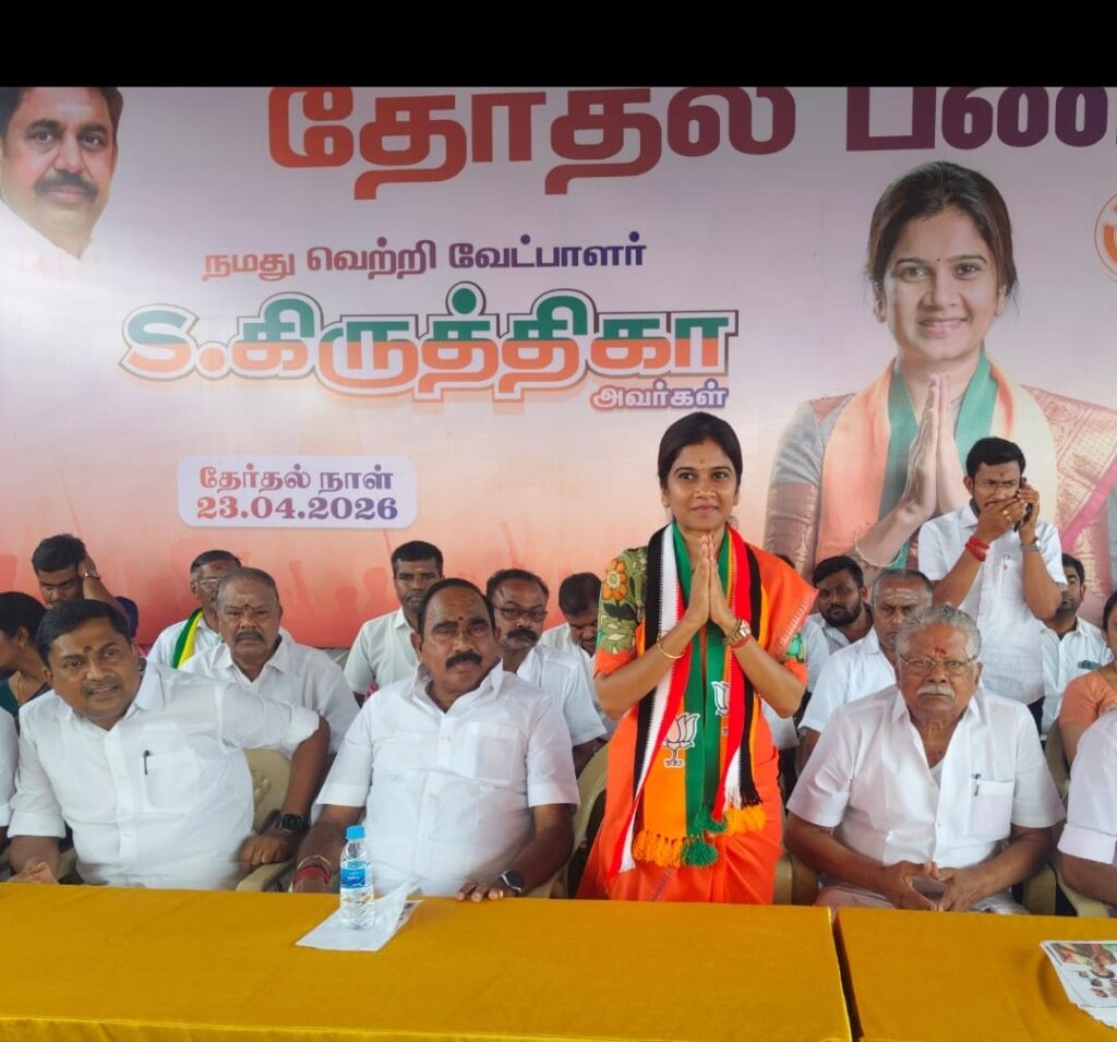 இதனைத் தொடர்ந்து பாஜக வேட்பாளர் எஸ். கிருத்திகா சிவக்குமார் அறிமுகம் செய்து வைக்கப்பட்டார்.