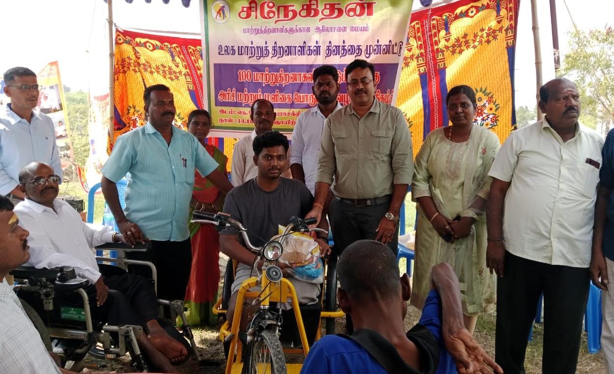 நிகழ்வை தொகுத்து வழங்கினார். நிகழ்வில் கோல்ட்லீப் எக்ஸ்னோரா துணைத் தலைவர் தமிழ்ராசா, பாரதி அரிசி ஆலை வரதன், மாற்றுத்திறனாளிகள் குடும்பத் தினர் கலந்து கொண்டனர். இறுதியில் சிநேகிதன் தாரணி நன்றி கூறினார்.