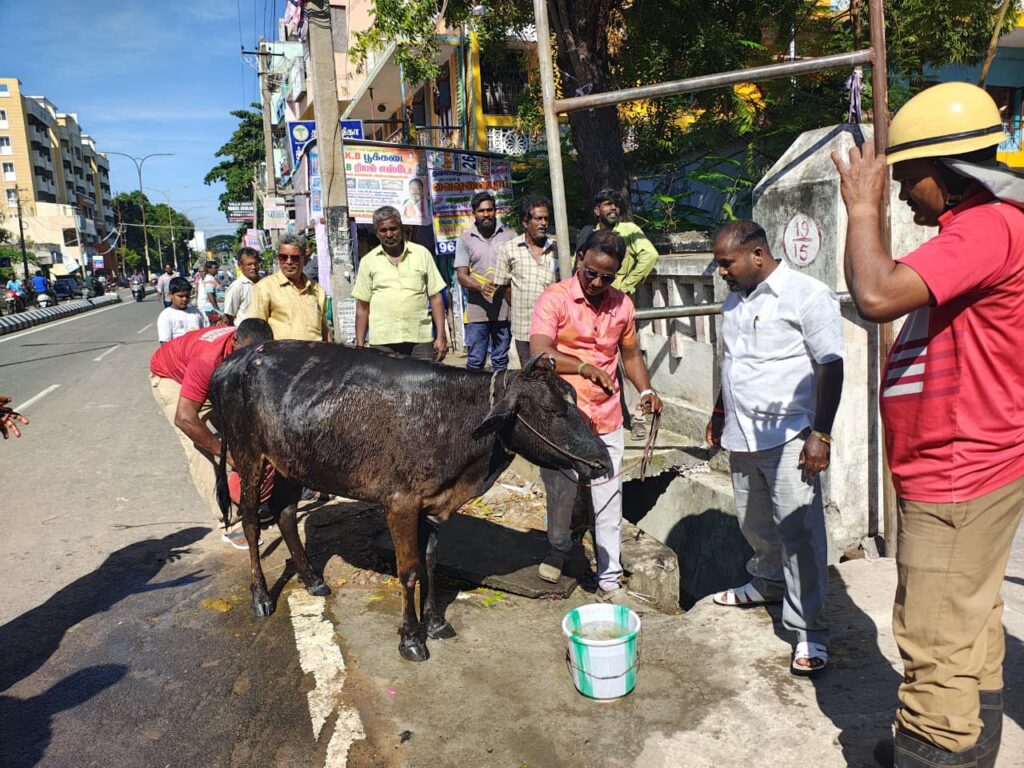 17.12.2025 இன்று சுமார் 1.00 மணி அளவில் அரியாங்குப்பம் காமராஜர் திருமண மண்டபம் அருகில் உள்ள பெரிய சைடு வாய்க்கால் பசுமாடு அதிகாலையில் தவறி விழுந்து உள்ளது அதனை இப்பொழுது பார்த்தவுடன் கொம்யூன் பஞ்சாயத்து அதிகாரிகளுக்கு தகவல் கொடுக்கப்பட்டது உடனே அங்கு வந்த ஊழியர்கள் அரியாங்குப்பம் காவல்துறை ஆய்வாளர் இடம் தொடர்பு கொண்டு தீயணைப்பு துறை வரவழைத்து வெகு நேரமாக உயிருக்கு போராடிய அந்த பசு மாட்டை உயிருடன் மீட்டனர் விரைவாகவும் அந்த பசு மாட்டுக்கு மருத்துவ சிகிச்சை அளிக்கப்பட்டது இது பெரு உதவியாக இருந்த இளநிலை பொறியாளர் சுரேஷ், செழியன் அவர்களுக்கும் காவல்துறை தீயணைப்பு துறை அதிகாரிகளுக்கும் ஊழியர்களுக்கும் பாராட்டுகளையும் நன்றியும் தெரிவித்துக் கொள்கின்றேன் மேலும் கொம்யூன் பஞ்சாயத்து அதிகாரிகளுக்கு ஏழை மக்கள் கட்சி சார்பாக எனது பணிவான வேண்டுகோள் சாலையில் சுற்றித் திரியும் மாடுகளின் உரிமையாளர் மீது கடுமையான நடவடிக்கை எடுக்க வேண்டும் பசு மாடு வளர்ப்பவர்கள் தங்களது பாதுகாப்பான இடத்தில் அதை வளர்க்க தெரிவிக்க வேண்டும் மேலும் மீறினால் அவர்களுக்கு அபராதம் விதித்து நடவடிக்கை எடுக்க வேண்டும் நன்றி! ஏழை மக்கள் கட்சி நிறுவனர் பூக்கடை கமலக்கண்ணன் .