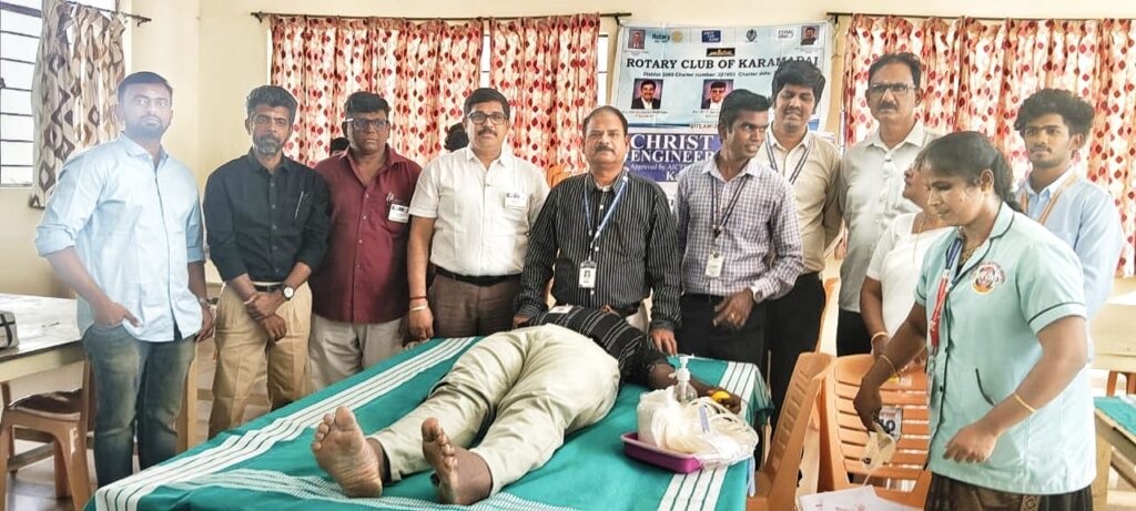 கோவை மாவட்டம் காரமடை அருகே சிக்காரம்பாளையம் ஊராட்சியில் உள்ள கிறிஸ்து அரசர் பொறியியல் கல்லூரியில் காரமடை ரோட்டரி சங்கம்,திருப்பூர் ஐ.எம்.ஏ.பிளட் பேங்க்,கல்லூரி நாட்டு நலப்பணி திட்டம்,இண்ட்ராக்ட் கிளப் ஆகியவை இணைந்து இரத்ததானம் வழங்கும் முகாமை நடத்தினார்கள்.இம்முகாம் ரோட்டரி சங்கத் தலைவர் குமணன் நடராஜன் தலைமையில் நடைபெற்றது.