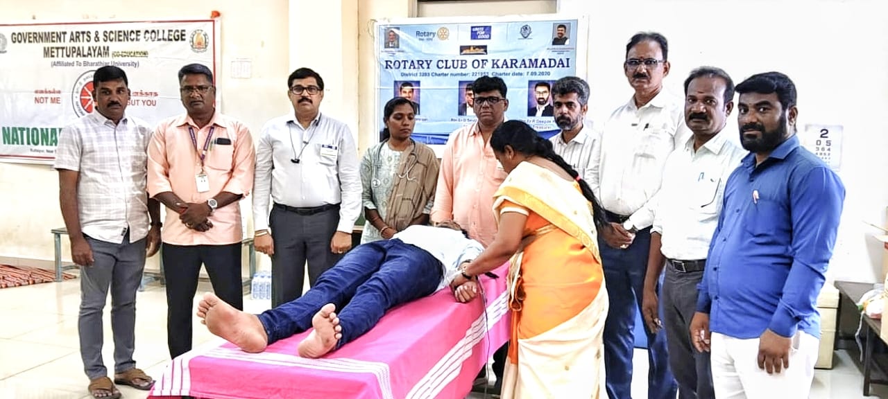 கோவை மாவட்டம் காரமடை அருகே குட்டையூர் பகுதியில் உள்ள அரசு கலை அறிவியல் கல்லூரியில் காரமடை ரோட்டரி சங்கம், மேட்டுப்பாளையம் அரசு மருத்துவமனை இரத்த வங்கி, யூத் ரெட் கிராஸ் சொசைட்டி மற்றும் கல்லூரி நாட்டு நலப்பணி திட்டம் ஆகியவை இணைந்து இரத்ததானம் வழங்கும் முகாமை நடத்தினார்கள். இம்முகாம் ரோட்டரி சங்கத் தலைவர் குமணன் நடராஜன் தலைமையில் நடைபெற்றது.