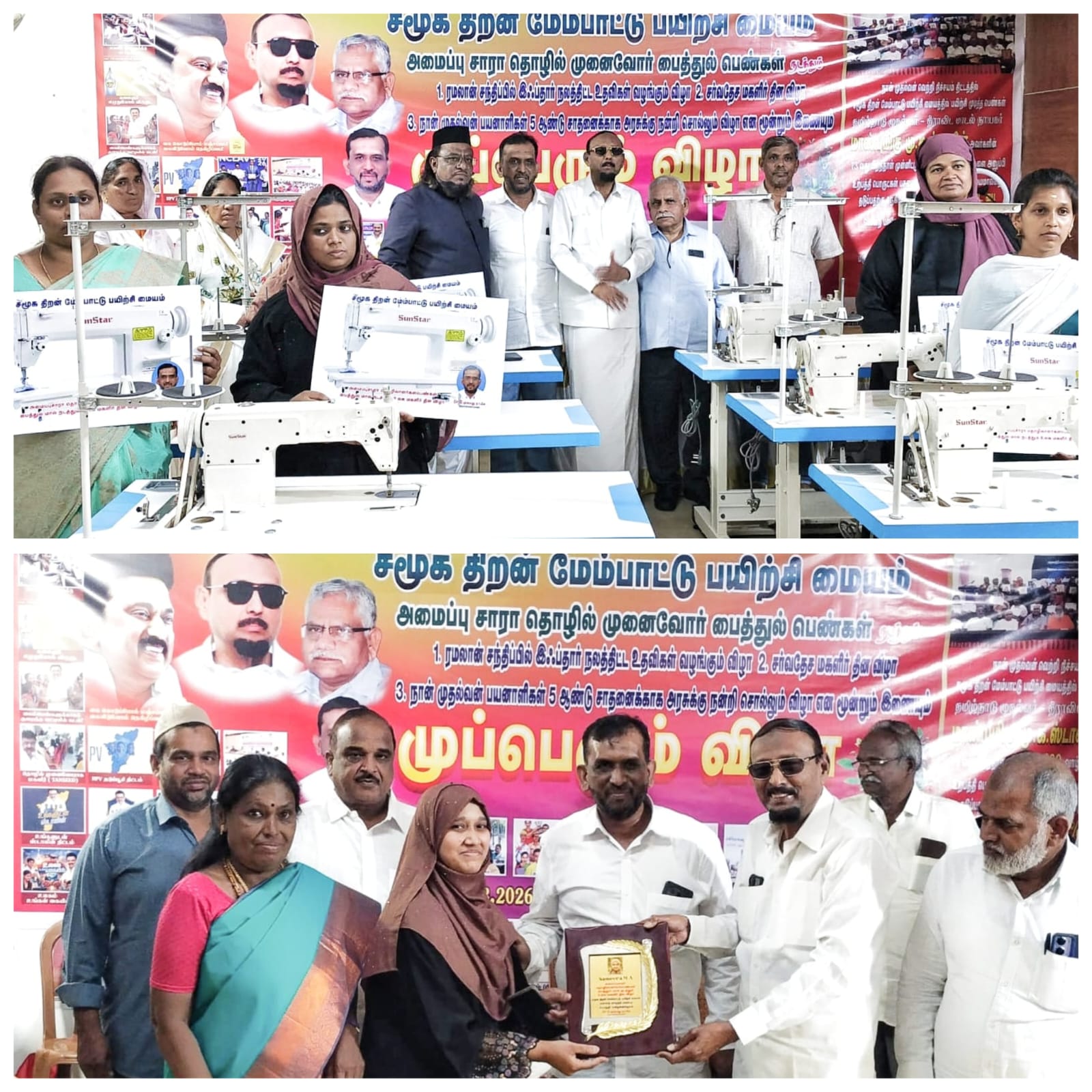 மு. க .ஸ்டாலின் அவர்களின் பிறந்தநாளை முன்னிட்டு 7,300 வாழ்த்து மடல் அனுப்பி ஐந்து ஆண்டு சாதனைக்காக நன்றி சொல்லும் சர்வதேச மகளிர் தின விழாவில் ஆறு பயனாளிகளுக்கு தையல் பவர் இயந்திரம் மற்றும் கலந்து கொண்ட அனைவருக்கும் ரம்ஜான் உணவு கிட் வழங்கி இப்தார் விருந்துடன் நடைபெற்றது இந்நிகழ்ச்சியில் சமூகத்திறன் மேம்பாட்டு பயிற்சி மையத்தின் ஒருங்கிணைப்பாளர் டாக்டர் ஜி முகமது ரபிக் அவர்கள் அனைவரையும் வரவேற்றுப் வாழ்த்துரை ஆற்றினார் பயிற்சி ஆசிரியை M.A.சமீரா அவர்கள் தலைமையில் எஸ். குரூஸ் மேரி,என். உமைபா,ஏ.அமல்,Z Z.பௌசியா சுல்தானா,எம்.தேவி, w.சமீரா,ஜீ.ஜோதி ஆகியோரின் முன்னிலையில் நடைபெற்றது. இந்நிகழ்ச்சியில் பி. என்.ஏ. கோயம்புத்தூரின் நிர்வாக இயக்குனர் Z.முகமது நாசர் அவர்கள் வெற்றிக்கான இலக்கு என்னும் தலைப்பில் கருத்துரை ஆற்றினார் மேலும் ecy labs இன் நிறுவனத் தலைவர் வி.ஜி ரியாஸ்தீன் அவர்கள் இன்றைய காலத்தில் ஆண்ட்ராய்டு போனால் வரும் ஆபத்துக்களை எடுத்துரைத்து பயனுள்ள வழியில் பாதுகாப்பதற்கான வழிகளை எடுத்துரைத்தார். அமைப்புசாரா தொழிலாளர்கள் நல வாரிய கண்காணிப்பாளர் ஜே.மாலினி அவர்கள் திட்ட விளக்கு உரை ஆற்றினார்கள் முதன்மை கருத்தாளர் நான் முதல்வன் திட்டம் A. ராஜா முகமது அவர்கள் கல்வி வளர்ச்சிக்கான கருத்துரை ஆற்றினார்கள் தலைமை தபால் நிலையத்தின் அதிகாரி உமா மகேஸ்வரி அவர்கள் சேமிப்பு என் பாதுகாப்பு எனும் தலைப்பில் விளக்க உரை ஆற்றினார்கள் பைத்துல் மால் நிறுவன தலைவரும் தமிழ்நாடு காங்கிரஸ் கமிட்டியின் துணைத்தலைவருமான ஹாஜி எஸ்.எம். ஹிதாயத்துல்லா அவர்களும் ஆடிட்டர் T.முகமது கலிமுத்தீன் ஹாஜியார் அவர்களும் தையல் இயந்திரம், சான்றிதழ் மேலும் பல நலத்திட்ட உதவிகளை வழங்கி சிறப்புரையாற்றினார்கள் சமூகநீதி கூட்டமைப்பு சார்பாக தலைவர்கள் இராம வெங்கடேசன்,ராக்கி கிருஷ்ணன்,Ln.A அருள் தாஸ் மயிலே செந்தில்குமார் பிரிஸ்டைன் ஜைலாப்தீன்,அஷ்ரப் ஹஜ்ரத் ஆகியோர் உணவு கிட் நலத்திட்டங்களை வழங்கினர் ஒருங்கிணைப்பாளர் டாக்டர்.ஜி. முஹம்மது ரஃபீக் அவர்கள் கூறுகையில் வறுமை கோட்டிற்கு கீழ் உள்ள குடும்பப் பெண்களின் முன்னேற்றத்திற்காக பல்வேறு நலத்திட்டங்களை திராவிட மாடல் அரசு பயனாளிகளுக்கு கொடுத்து வருகிறது அரசு தொண்டு நிறுவனங்களுடன் இணைந்து பல ஆயிரக்கணக்கான மக்களுக்கு பயனடையும் வகையில் இந்த பயிற்சி மையம் செயல்பட்டு வருகிறது இதற்கு ஒத்துழைத்த அனைவருக்கும் பயன்பெற்ற மகள் இருக்கும் மகளிர் தின வாழ்த்துக்களை கூறினார்.