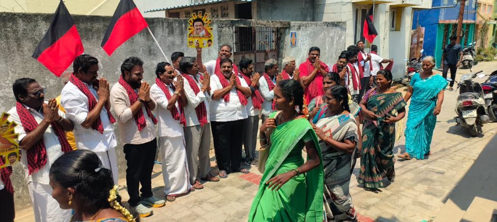 தேர்தல் வகுப்பில் பங்கேற்றுச் சென்ற ஆசிரியர்களிடம் திமுக சார்பில் ஒன்றிய பெருந்தலைவர் விஜயகுமார் தலைமையில் பேரூராட்சி மன்ற தலைவர் மொக்தியார் அலிமஸ்தான்,பொதுக்குழு உறுப்பினர் மணிவண்ணன் நகர செயலாளர் கார்த்திக் உள்ளிட்ட திமுகநிர்வாகிகள் உதயசூரியன் சின்னத்திற்கு வாக்கு சேகரத்தனர்.