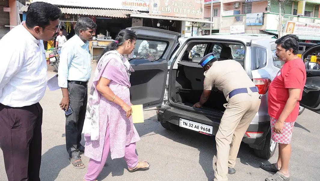 சேலத்தில் பறக்கும் படையினா் தீவிர சோதனை.