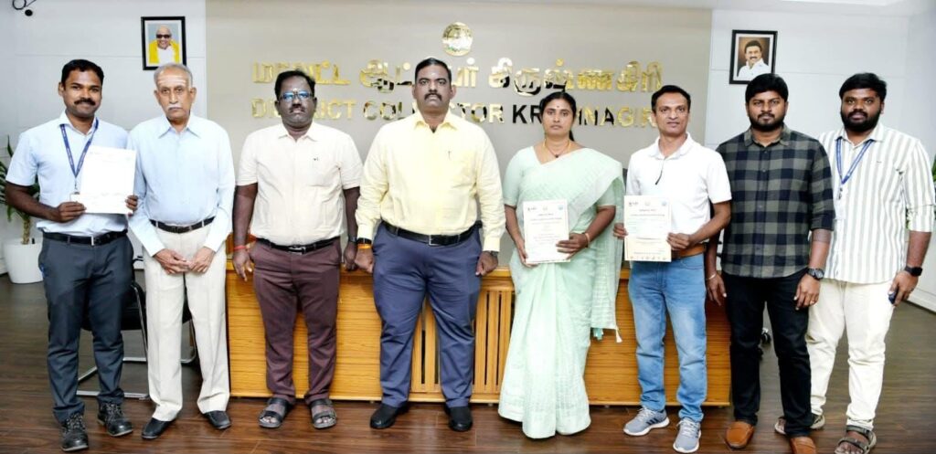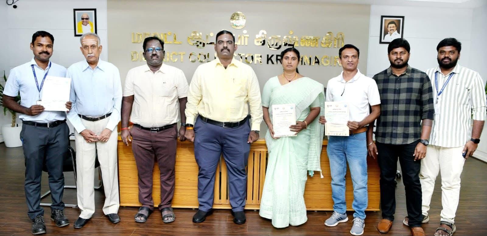 கிருஷ்ணகிரி மாவட்ட ஆட்சியர் அலுவலக கூட்டரங்கில், தமிழ்நாடு மாசு கட்டுப்பாடு வாரியம் சார்பாக நடைபெற்ற “பசுமை சாம்பியன் விருது -2025 போட்டிகளில் சுற்றுச்சூழல் பாதுகாப்பு நடவடிக்கைகளில் எடுத்துக்காட்டாக செயல்பட்டு சமூகத்தில் விழிப்புணர்வை ஏற்படுத்தி, பசுமை வளர்ச்சி மற்றும் நிலைத்த வளர்ச்சிக்கான சிறப்பாக பங்களிப்பு மேற்கொண்ட குளோபல் கால்சியம் நிறுவனம் தொழிற்சாலைகள் பிரிவு. கென்னத் ஆண்டர்சன் நேட்சர் சொசைட்டி தன்னார்வ தொண்டு நிறுவனம் மற்றும் ஆர்.வி.அரசு ஆண்கள் மேல்நிலைப்பள்ளி கல்வி துறை பிரிவு ஆகியவற்றிற்கு ரூ.1 இலட்சம் மதிப்பிலான காசோலை மற்றும் விருதுகளை மாவட்ட ஆட்சித்தலைவர் ச.தினேஷ் குமார் இ.ஆ.ப. அவர்கள் அன்று 12.03.2026 வழங்கினார். உடன் மாவட்ட சுற்றுச் சூழல் பொறியாளர் .முத்துராஜ் உள்ளார்.