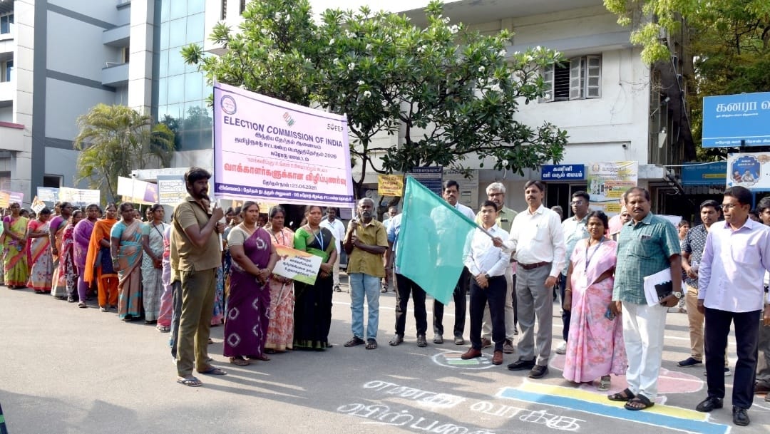வருகின்ற 23/4/2026 அன்று நடைபெற இருக்கும் தமிழ்நாடு சட்டமன்ற பொது தேர்தல் 2026-யை முன்னிட்டு, ஈரோடு மாநகராட்சி, வாக்களிப்பது உங்கள் உரிமை மற்றும் கடமை என்ற விழிப்புணர்வு பேரணியை ஈரோடு ஆட்சியர் ச. கந்தசாமி கொடி அசைத்து துவக்கி வைத்தார். மாநகராட்சி ஆணையாளர் அர்பித் ஜெயின், துணை ஆணையாளர் சரஸ்வதி, உதவி ஆணையாளர்( மண்டலம்1) மோகனப்பிரியா உள்ளிட்ட பலர் கலந்து கொண்டனர்.