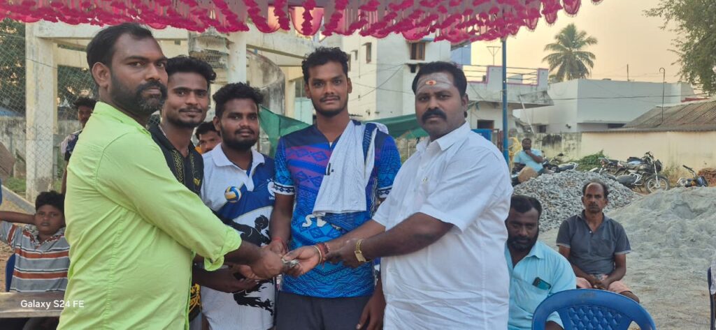 சார்பில் போச்சம்பள்ளி தாலுக்கா சந்தூர் கிராமத்தில் நடைபெற்ற கை பந்து போட்டி யை துவக்கி வைத்து