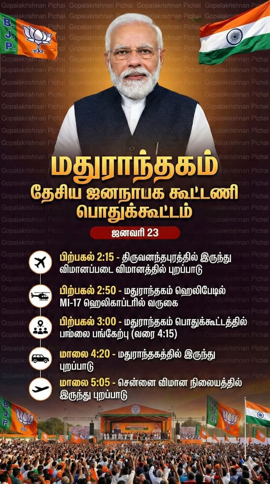 பிற்பகல் 3 : மதுராந்தகம் கூட்டத்தில் பங்கேற்கிறார்; 4.15 மணி வரை பொதுக்கூட்டம் நடைபெறுகிறது