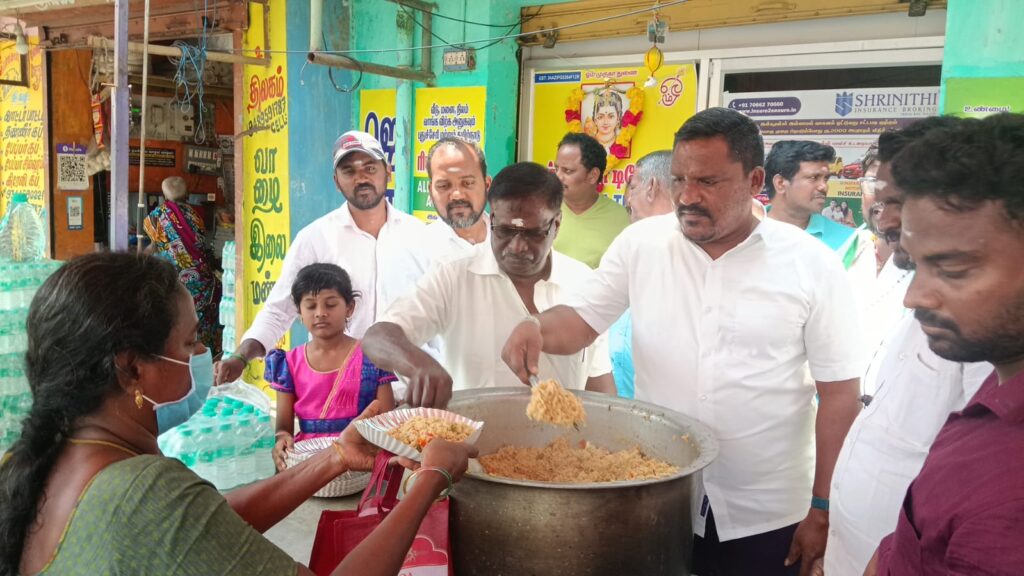 இதன் ஒரு பகுதியாக, ஏழை மக்கள் கழக நிறுவனர் தலைவர் பூக்கடை கமலக்கண்ணன் தலைமையில் பிரம்மாண்ட அன்னதான நிகழ்ச்சி நடைபெற்றது.