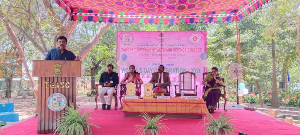 புதுச்சேரி தாகூர் அரசு கலை அறிவியல் கல்லூரியில் “பாலின உணர்வு மற்றும் சர்வதேச மகளிர் தின விழா” இன்று (12-03-2026, வியாழக்கிழமை) காலை 10:00 மணியளவில் கல்லூரி வளாகத்தில் உள்ள திறந்தவெளி கலை அரங்கில் சிறப்பாக நடைபெற்றது.