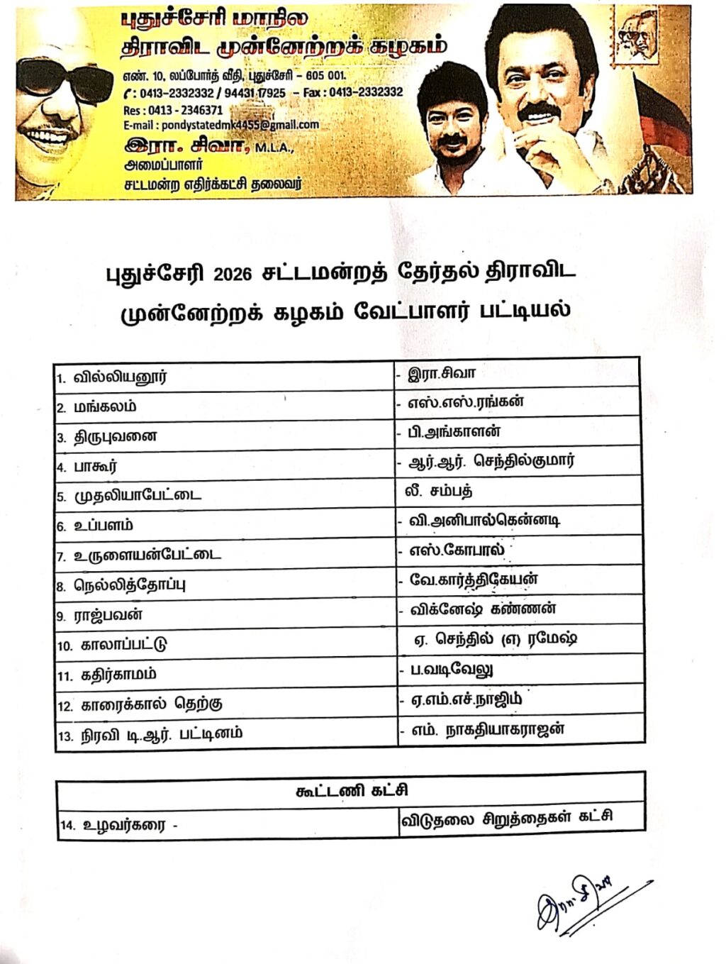அரசியல் புதுச்சேரி திமுகவில் போட்டியிடும் வேட்பாளர் மற்றும் தொகுதி வெளியீடு. Post navigation Previous கிருஷ்ணகிரி மாவட்ட ஆட்சியர் முன்னிலையில் மின்னணு வாக்குப்பதிவு இயந்திரங்கள் முதற்கட்ட ஒதுக்கீடுNext காமராஜ் நகர் பகுதியில் மனிதநேயத்தை முன்னிறுத்தும் வகையில் பிரச்சாரம் மேற்கொண்டு வரும் லட்சிய ஜனநாயகக் கட்சியின் தலைவர் ஜோஸ் சார்லஸ் மார்டின், More Stories அரசியல் புதுச்சேரி உழவர்கரை தொகுதி: குக்கர் சின்னத்திற்கு ஆதரவு திரட்டும் சுயேச்சை வேட்பாளர் சரவணன்! அரசியல் ஹோட்டலில் தோசை ஊற்றி ஓட்டு சேகரிக்க பாஜக வேட்பாளர் கிருத்திகா அரசியல் மொடக்குறிச்சி தொகுதி மதிமுக வேட்பாளருக்கு ஆதரவு..