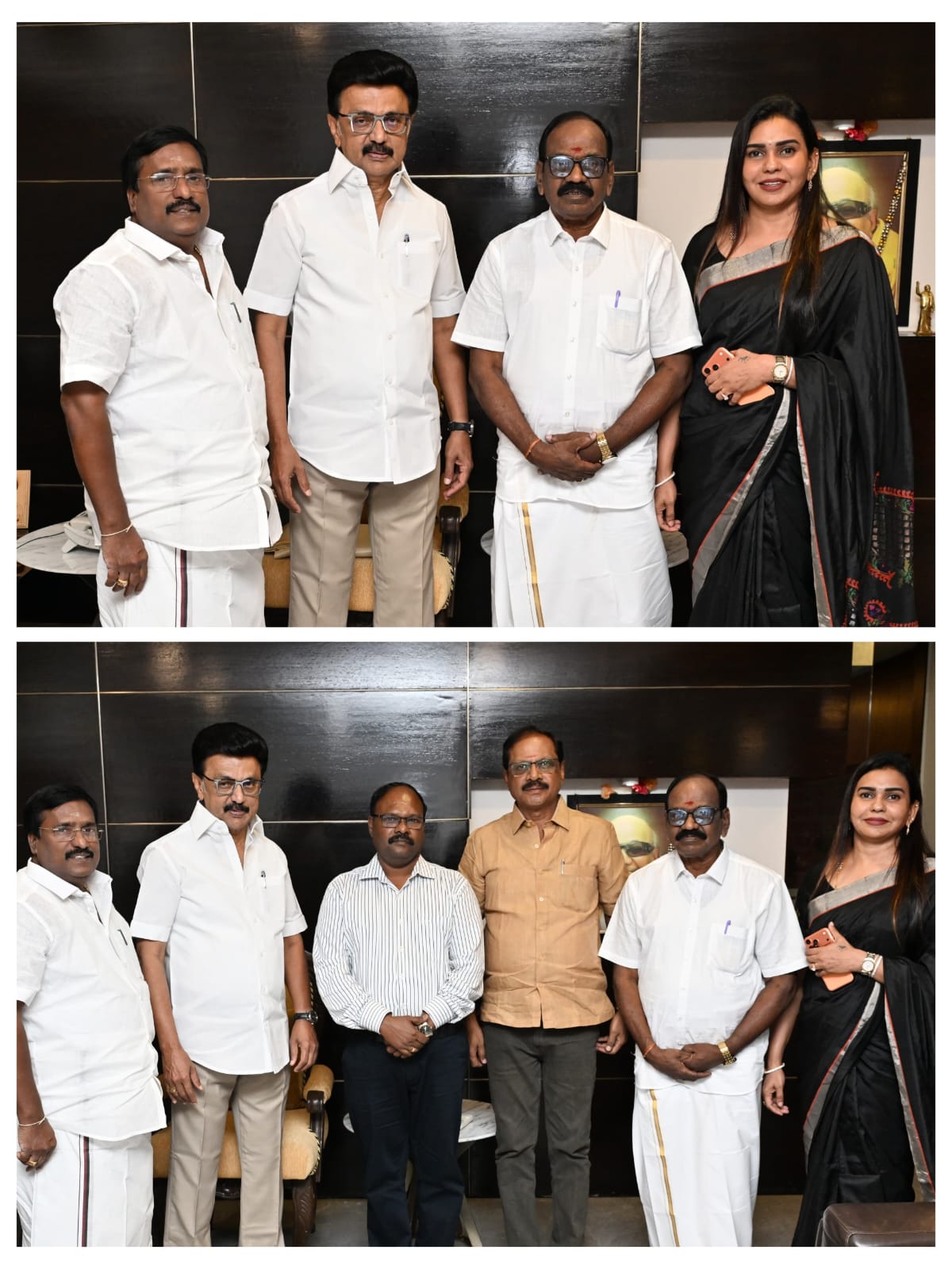 கழகத் தலைவர் மாண்புமிகு தமிழ்நாடு முதல்வர் அவர்கள் முன்னிலையில் புதுச்சேரி மங்கலம் தொகுதியை சேர்ந்த திரு. ரங்கன் அவர்களும் அவரது மகள் திருமதி. பிரியா, ஜே.கே. ராதாகிருஷ்ணன் மற்றும் முன்னாள் அரசு அதிகாரி திரு. யஸ்வந்தய்யா உள்ளிட்டோர் சென்னையில் உள்ள முதல்வர் முகாம் அலுவலகத்தில் தங்களை திராவிட முன்னேற்றக் கழகத்தில் இணைத்துக்கொண்டனர். அருகில் புதுச்சேரி மாநில திமுக அமைப்பாளரும் சட்டமன்ற எதிர்க்கட்சித் தலைவருமான திருமிகு இரா. சிவா அவர்கள் உள்ளார்
