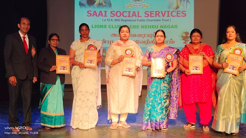 சாய் சமூக சேவை (Saai Social Services) என்ற அரசு சாரா அமைப்பு சமூகத்தில் பின்தங்கிய மக்களின் வாழ்க்கை தரத்தை உயர்த்தும் நோக்கில் பல்வேறு சமூக நலத் திட்டங்களை தொடர்ந்து செயல்படுத்தி வருகிறது.சர்வதேச பெண்கள் தினத்தை முன்னிட்டு கோயம்புத்தூர் ஹோப் காலேஜ் அருகிலுள்ள கிளஸ்டர் மீடியா கல்லூரியில் சமூக சேவையில் சிறந்து விளங்குபவர்களை கௌரவிக்கும் விழாவும்,புற்றுநோய் விழிப்புணர்வு கையேடு வெளியீட்டு விழாவும் நடைபெற்றது.