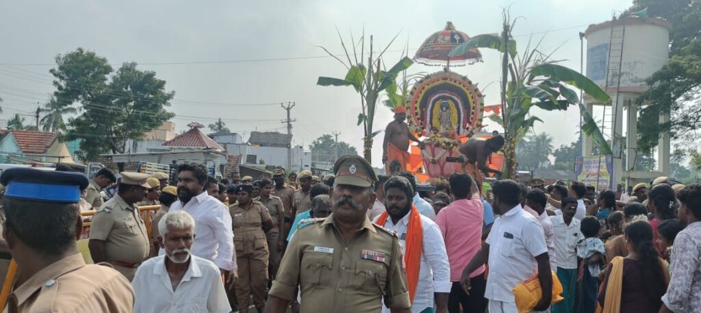 மணப்பாறை அருகே ஆட்டம், பாட்டத்துடன் களைகட்டிய ஞானவேல் முருகன் ரதயாத்திரை ஊர்வலம்.600 க்கும் மேற்பட்ட போலீசார் பாதுகாப்பு.
