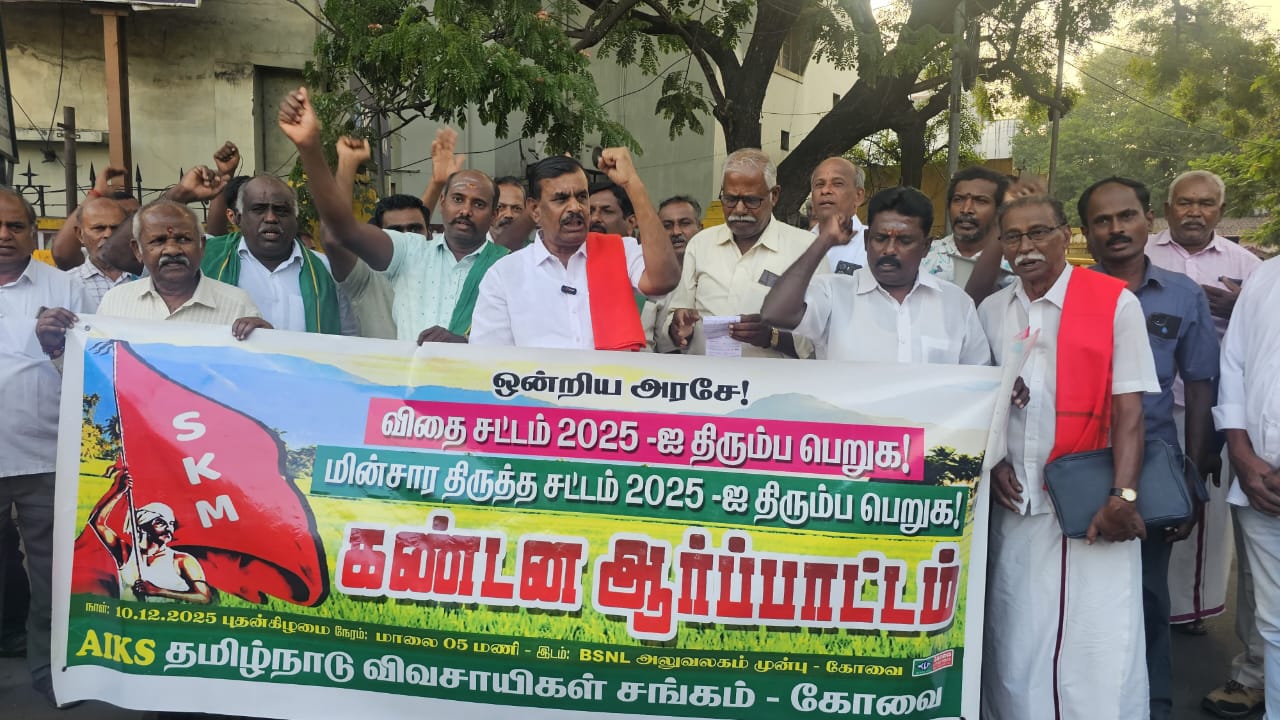 மேலும், விவசாயிகளின் கருத்துகளைப் பெறாமல் சட்டம் கொண்டு வரப்பட்டுள்ளதாகவும், அதனை உடனடியாக வாபஸ் பெறவேண்டும் என்றும், மின்சார திருத்தச் சட்டம் 2025-ஐயும் திரும்ப பெற வேண்டும் என்றும் கோரிக்கை விடுத்தார்.