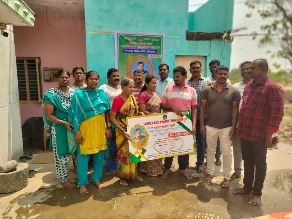 தமிழக காவல்துறையில் 2009-ஆம் ஆண்டு பணியில் சேர்ந்த காவலர்கள் ஒன்றிணைந்து நடத்தி வரும் “உதவும் அன்பு உள்ளங்கள்” குழு சார்பில், உயிரிழந்த பெண் காவலரின் குடும்பத்திற்கு சுமார் 25 லட்ச ரூபாய் நிதியுதவி வழங்கப்பட்டது.