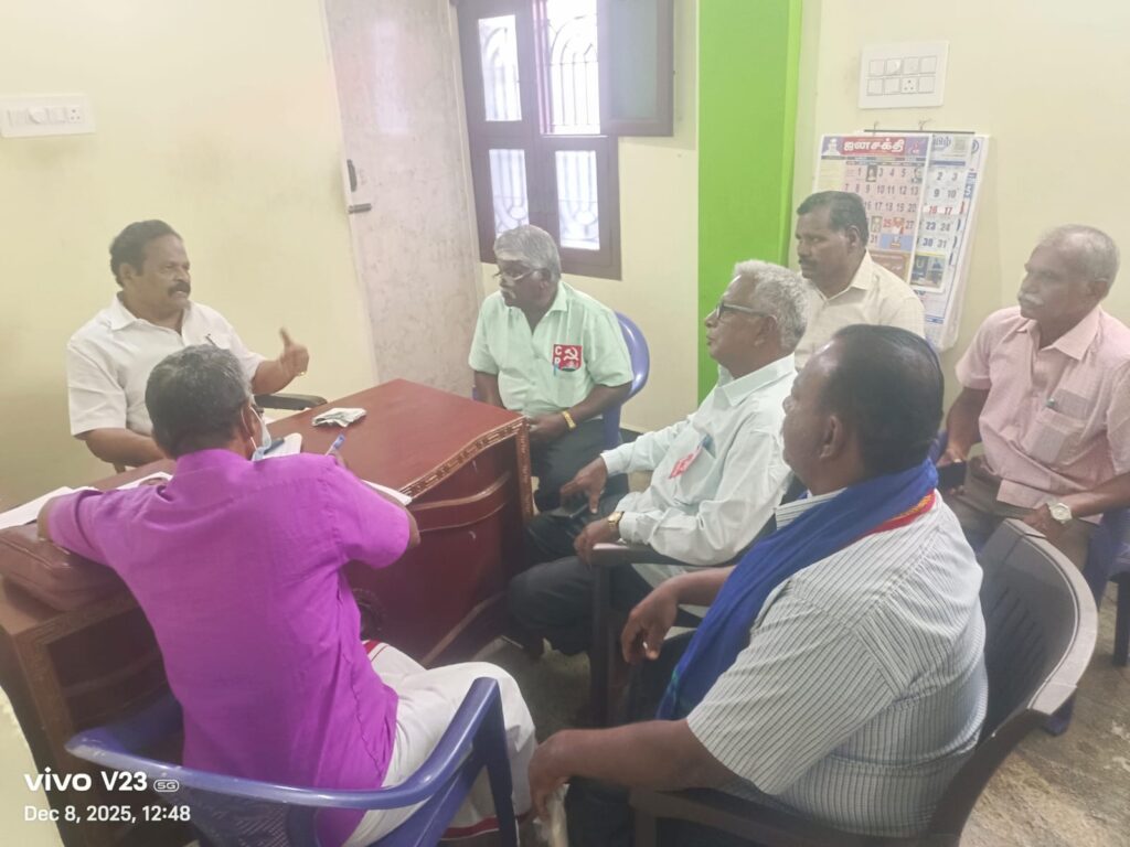 திருச்சி மிளகுபாறையில் உள்ள இந்திய கம்யூனிஸ்ட் கட்சி அலுவலகத்தில் திருச்சி மாவட்ட உள்ளாட்சி தொழிலாளர்கள் ஏஐடியூசி சங்கத்தின் மாவட்ட குழு கூட்டம் நடைபெற்றது.