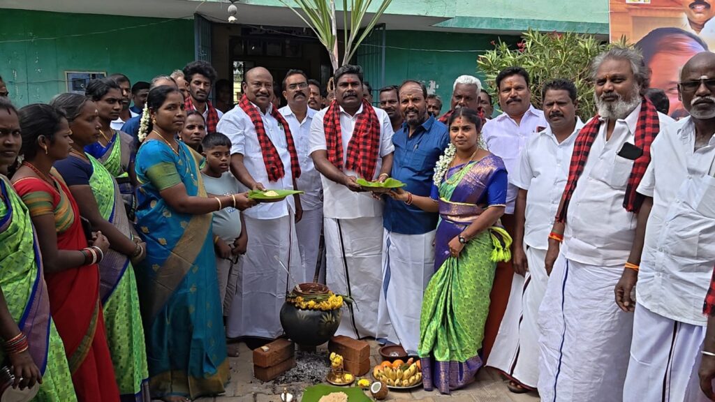 தூய்மை காவலர், தூய்மை பணியாளர்கள் ,OHT இயக்குநர்கள், அனைவருக்கும் ஊராட்சி மன்ற தலைவர் புத்தாடை வழங்கியும் கோலப்போட்டி, கபடி, பானை உடைத்தல், என பலவகை விளையாட்டு போட்டிகள் நடத்தி வெற்றி பெற்றோருக்கு பரிசுகள் வழங்கியும், இனிப்பு பொங்கல் வழங்கி 2026ல் மீண்டும் தமிழக முதல்வராக மு.க ஸ்டாலின் பதவி ஏற்பார் என சூளுரைத்து சபதம் ஏற்று கொண்டனர்.