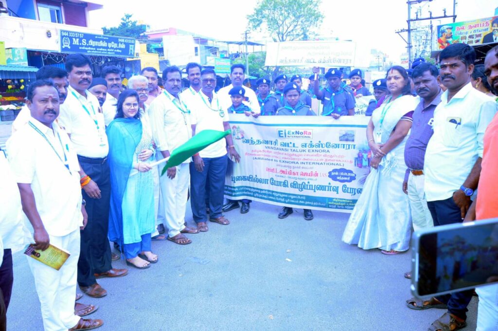 சிறப்பு அழைப்பாளராக, செய்யாறு சப் கலெக்டர் அம்பிகா ஜெயின் பங்கேற்று, புகையில்லா போகி விழிப்புணர்வு பேரணியை கொடி அசைத்து தொடங்கி வைத்தார். மேலும் இந்த நிகழ்வில் போகி பண்டிகை நாட்களில் பிளாஸ்டிக், ரப்பர் மற்றும் டயர்களை கொளுத்தாமல் சுற்றுச்சூழலை பாதுகாக்க வேண்டும் என்று உறுதிமொழி எடுக்கப்பட்டது. மேலும் பொது மக்களுக்கு விழிப்புணர்வு துண்டுப் பிரசுரங்கள் விநியோகம் செய்யப்பட்டது. பேரணியில் சங்க நிர்வாகிகள் பெ.பார்த்திபன், மலர் சாதிக், இரா.பாஸ்கரன், ஆலோசகர் கு.சதானந்தன், பூபதி, வந்தை குமரன், மணி, பெருமாள், சத்தியமூர்த்தி ஜா.தமீம், ரகுபதி, முருகவேல், குமரவேல், செல்வராஜ் உள்ளிட்டோர் பங்கேற்றனர். மேலும் இப்பேரணியில் வந்தவாசி கிங்ஸ்டன் மெட்ரிக் பள்ளி மாணவர்கள் மற்றும் உடற்கல்வி ஆசிரியர்கள் கலந்து கொண்டனர். முன்னதாக, புதிய பேருந்து நிலைய கூட்டுச் சாலை பகுதியில் பொது மக்களின் பயன்பாட்டிற்காக எக்ஸ்னோரா சார்பில் மக்கும் மக்கா – குப்பைகள் இடுவதற்கு டிரம்கள் மேனலூர் எஸ்கேம்.மணி நிதியுதவியால் வைக்கப்பட்டது. நிகழ்வை ஒருங்கிணைப்பாளர் க. பூபாலன் ஒருங்கிணைத்தார். இறுதியில் சங்க பொருளாளர் அ.பூவிழி நன்றி கூறினார்.