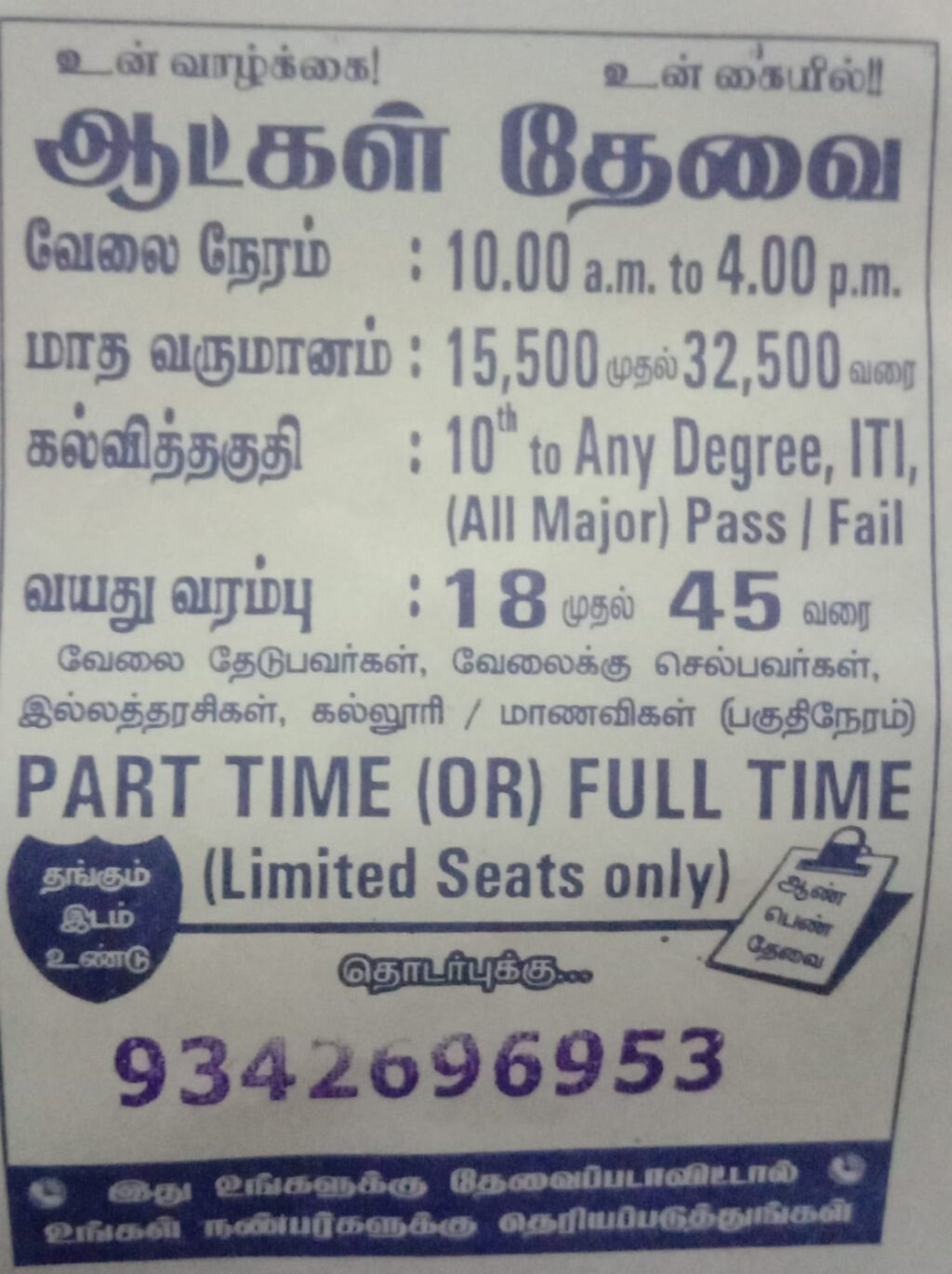 வேலைக்கு ஆட்கள் தேவை என்று பொது மக்கள் இளைஞர்களை குறி வைத்து மோசடி!