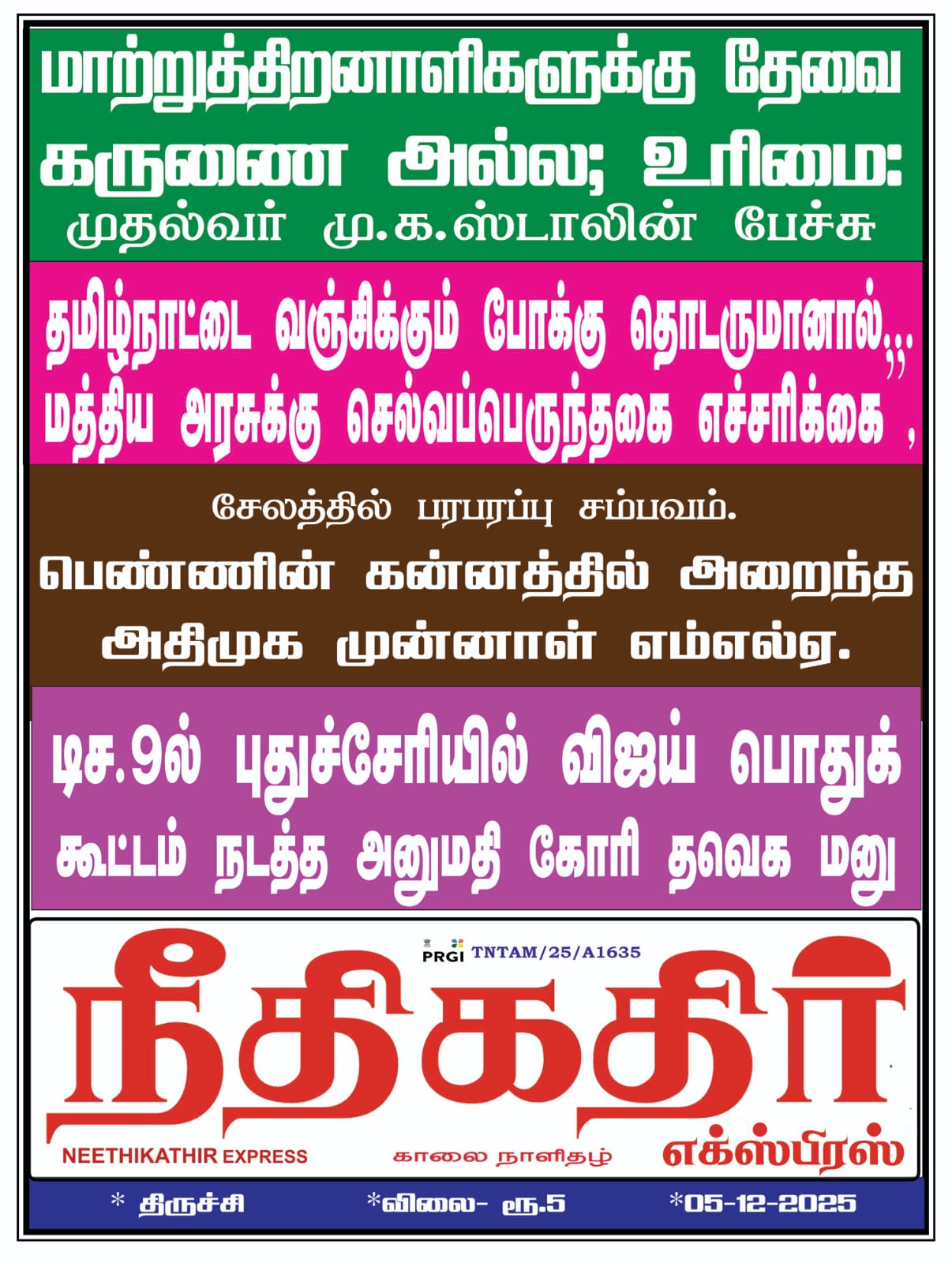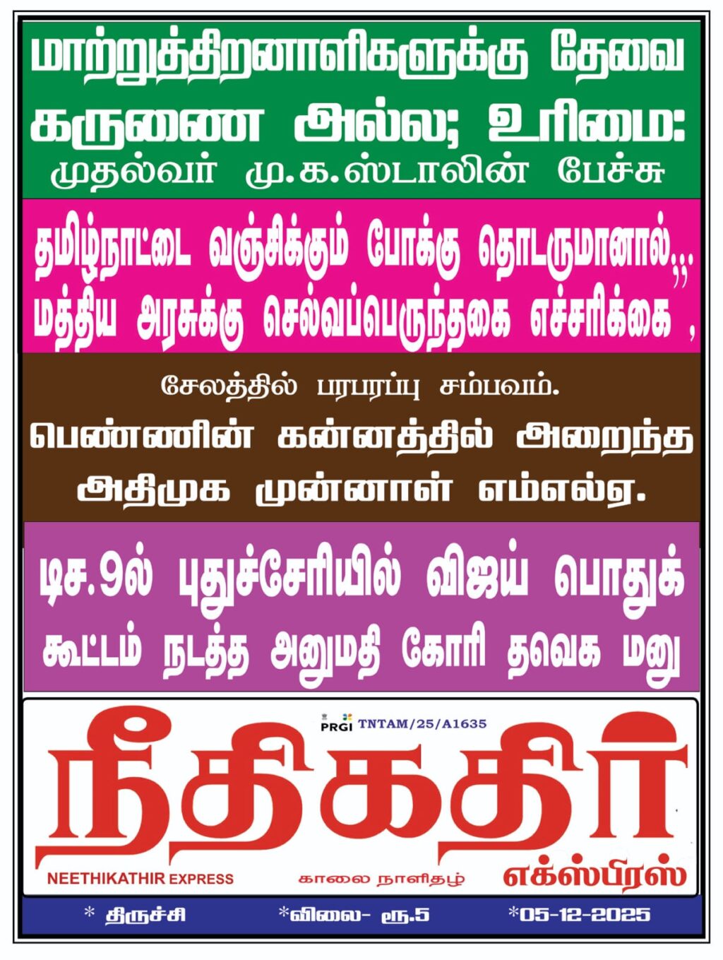 E-Paper 05-12-25 Post navigation Previous போலி மருந்து நிறுவனம் பற்றி பொய்களைக் கூறும் எதிர்கட்சிகளுக்கு வன்னிய முன்னேற்ற இயக்கம் கடும் கண்டனம்.புதுச்சேரி தேங்காய்த்திட்டு வன்னிய முன்னேற்ற இயக்கத் தலைவர் லிங்கசாமி வெளியிட்டுள்ள அறிக்கையில் கூறியிருப்பதாவது.புதுவையில் நீண்ட காலமாக மருந்து மாத்திரை முறைகேடுகள் மற்றும் அனுமதி பெறாத மருந்து கம்பெனிகள் செயல்பட்டு வருகின்றன. இது தொடர்பாக முன்னாள் முதலமைச்சர் நாராயணசாமி மற்றும் பாராளுமன்ற உறுப்பினர் வைத்திலிங்கம் ஆகியோர் தற்போதைய அரசை குறை கூறி வருவதை வன்னிய முன்னேற்ற இயக்கம் வன்மையாகக் கண்டிக்கிறது.இந்த முறைகேடுகள் கடந்த கால காங்கிரஸ் ஆட்சியிலேயே நடந்தவை என்றும், குறிப்பாக அந்த அதிகாரிகளை நியமித்தது முன்னாள் முதல்வர் நாராயணசாமிதான் என்றும் அதிமுக மாநிலச் செயலாளர் அன்பழகன் கூறியதை இவர் சுட்டிக்காட்டியுள்ளார்.Next Next Post More Stories E-Paper 26-02-26 E-Paper 25-02-26 E-Paper 24-02-26