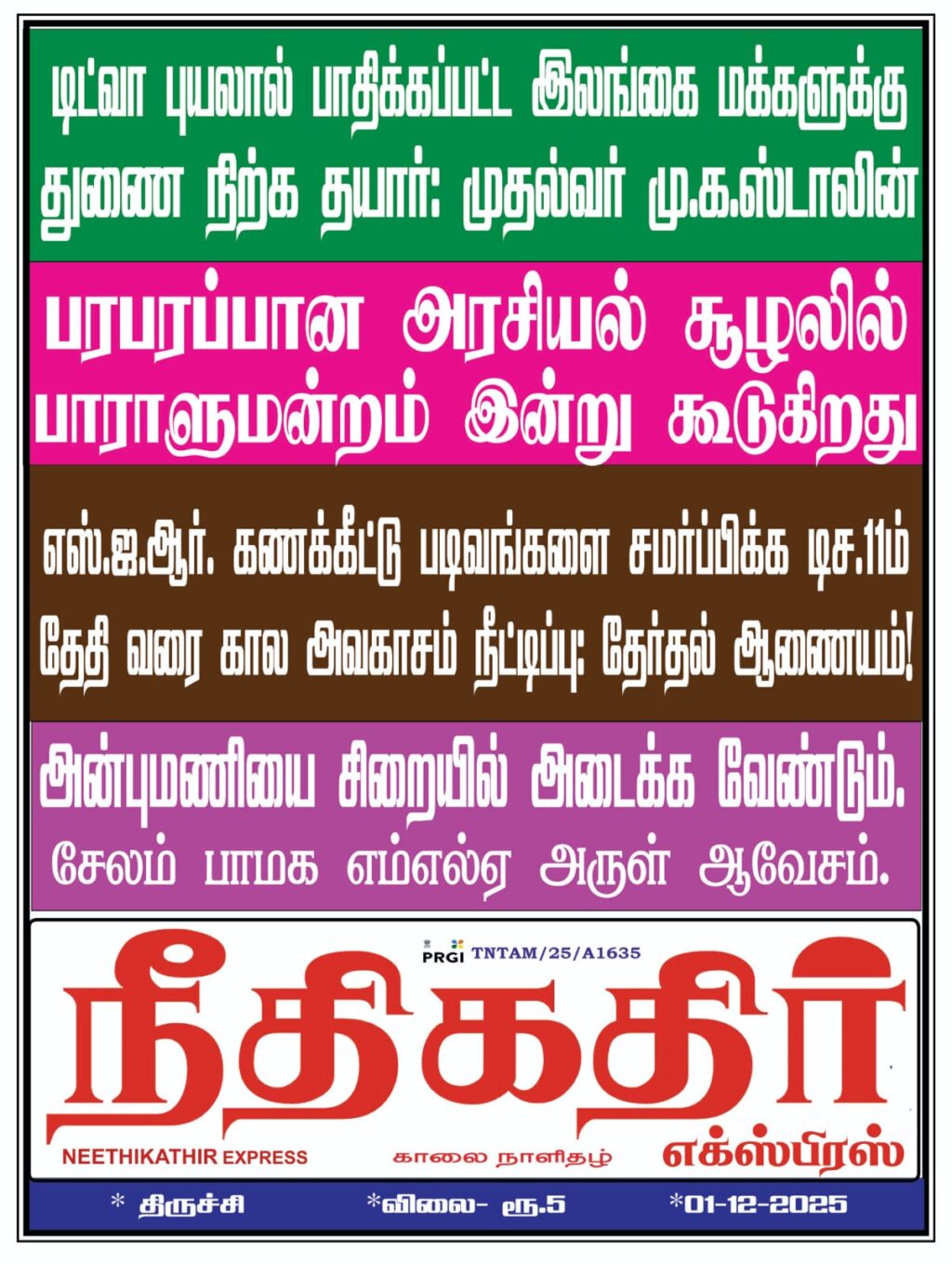 E-Paper 1-12-25 Post navigation Previous கோயமுத்தூர் சாக்கு வியாபாரிகள் சங்க சமாதான குழு ஆலோசனை கூட்டம்Next FLASH NEWS More Stories E-Paper 26-02-26 E-Paper 25-02-26 E-Paper 24-02-26