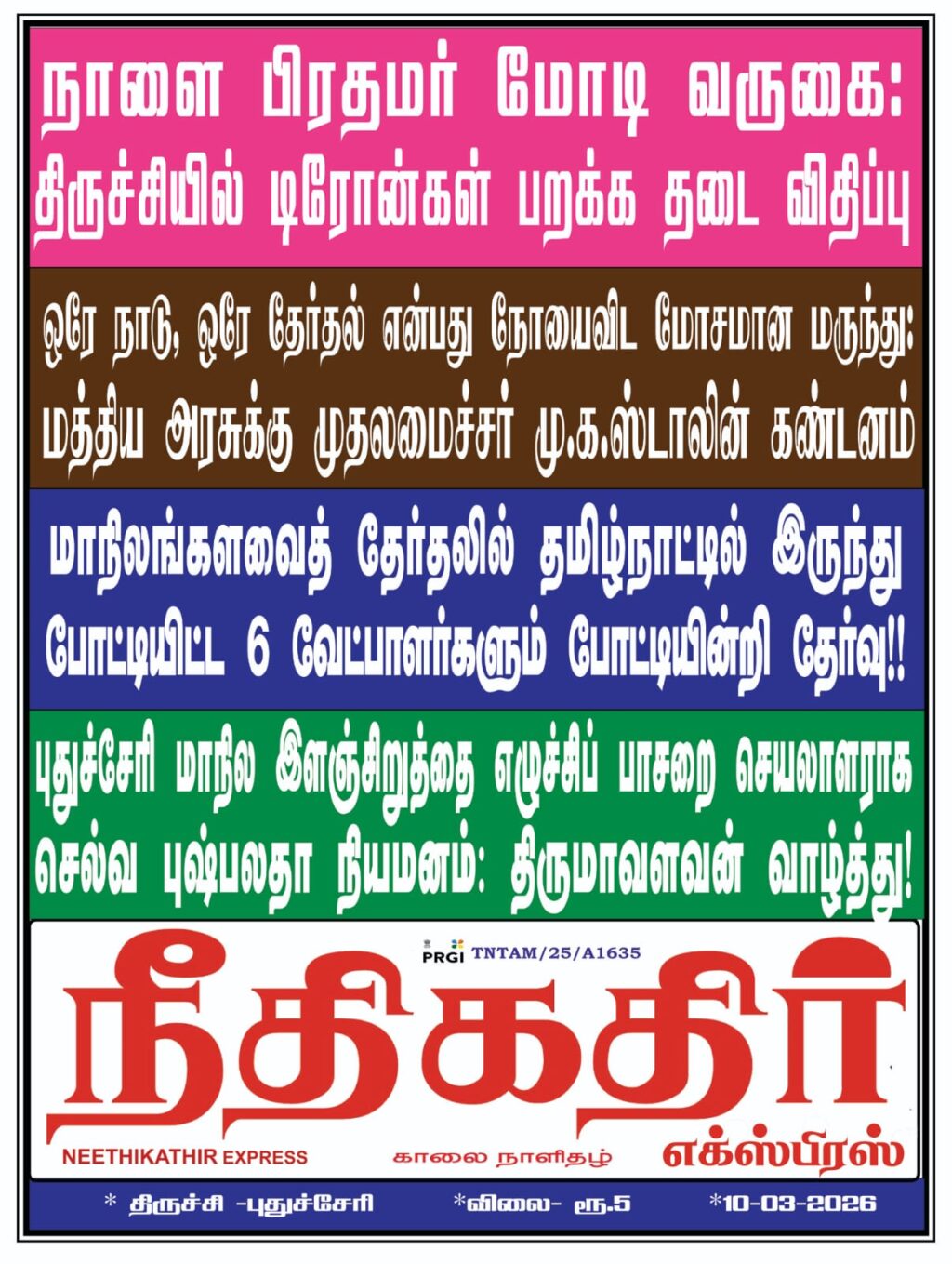 E-Paper 10-03-26 Post navigation Previous சர்தார் வல்லபாய் பட்டேல் அரசு தொடக்கப் பள்ளி சேதராப்பட்டில் அடிப்படை கல்வியறிவு மற்றும் எண்ணியல் விழா மற்றும் கற்றல் கற்பித்தல் பொருட்களின் கண்காட்சி மற்றும் முன்மழலையர் தினவிழா நடைபெற்றது. பள்ளியின் தலைமையாசிரியை ஹேமமாலினி வரவேற்புரை மற்றும் நோக்கவுரையை வழங்கினார். மாநில திட்ட இயக்குநர் எழில் கல்பனா, சமக்ரா சிக்ஷா அவர்கள் சிறப்பு விருந்தினராக கலந்துகொண்டு சிறப்புரை வழங்கினார்.Next 11-03-26 More Stories E-Paper 05-04-26 E-Paper 04-04-26 E-Paper 03-04-26
