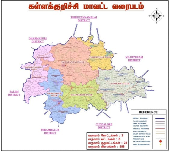 தற்போதைய விழுப்புரம் மாவட்டத்தின் தெற்குமேற்குப் பகுதிகளைக் கொண்டு, தமிழ்நாட்டின் 34-ஆவது மாவட்டமாக கள்ளக்குறிச்சி மாவட்டம் 08 ஜனவரி 2019ல் புதிதாக உருவாக்கப்பட்டது. இம்மாவட்டத்தின் தலைமையிடம் கள்ளக்குறிச்சி நகரம் ஆகும்.