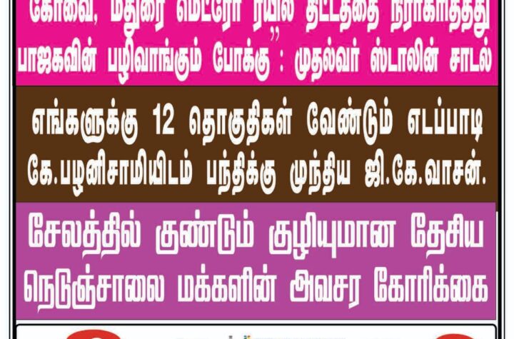 தவெக தலைவர் விஜய்,கரூரில் பிரசாரம் மேற்கொண்டபோது கூட்ட நெரிசல் ஏற்பட்டு 41 பேர் பலியான நிலையில், பிரசாரத் திட்டத்தை...