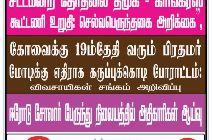 500 கால்நடைகளுக்கு சிகிச்சை அளித்த மருத்துவ குழுவினர்… ஈரோடு. நவ. 18 ஈரோடு மாவட்டம் கொடுமுடி அருகே நடைபெற்ற...