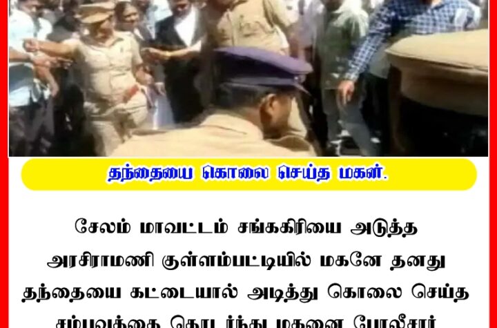 சேலத்தில் தந்தையை கட்டையால் அடித்து கொலை செய்த மகன். சேலம் மாவட்டம் சங்ககிரியை அடுத்த அரசிராமணி குள்ளம்பட்டியில் மகனே...