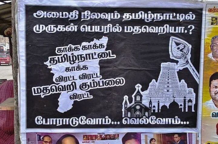 சேலம் மாவட்டம் வாழப்பாடியில் அமைதி நிலவும் தமிழ்நாட்டில் முருகன் பெயரில் மதவெறியா?எனக் குறிப்பிட்டு,கருப்பு நிறத்தில் ஒட்டப்பட்ட சுவரொட்டியால் பரபரப்பு...