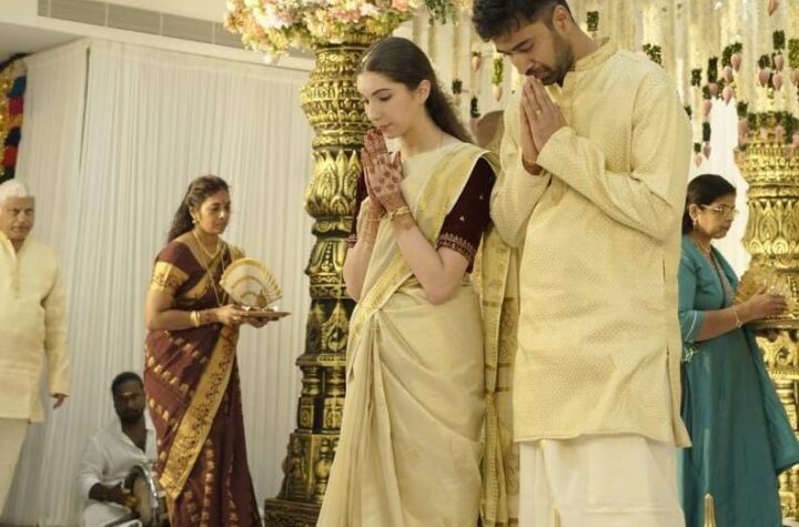 அமெரிக்க பெண்ணுடன் கோவையில் நடந்த திருமண விழாவில் பட்டு புடவை, பட்டுவேட்டி,சட்டை,அணிந்து திருமண விழாவில் கலந்து கொண்டு மணமக்களை...