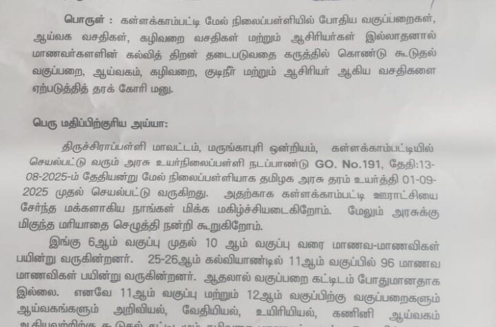 திருச்சி மாவட்டம், மருங்காபுரி வட்டம் , களக்காம்பட்டி பஞ்சாயத்து சேர்ந்த ஊர் பொதுமக்கள் சார்பாக தரம் உயர்த்தப்பட்ட மேல்நிலைப்...