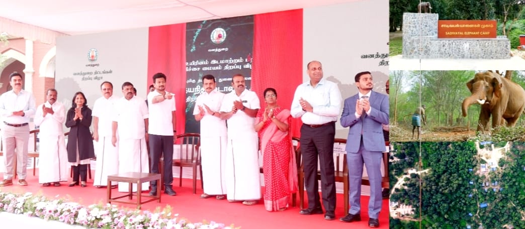 தமிழ்நாடு துணை முதலமைச்சர் உதயநிதி ஸ்டாலின் கோயம்புத்தூர் வனக்கோட்டத்தில் 19.50 கோடி ரூபாய் செலவில் கட்டப்பட்ட வன உயிரின இடமாற்றம் மற்றும் சிகிச்சை மையம், சாடிவயலில் 8.00 கோடி ரூபாய் மதிப்பீட்டில் அமைக்கப்பட்டுள்ள யானைகள் பராமரிப்பு முகாம், 2.60 கோடி ரூபாய் செலவில் வடிமைக்கப்பட்டுள்ள மின்னணு வனஆவணக் காப்பக இணையதள சேவை ஆகியவற்றை காணொலி காட்சி வாயிலாக திறந்து வைத்தார்.