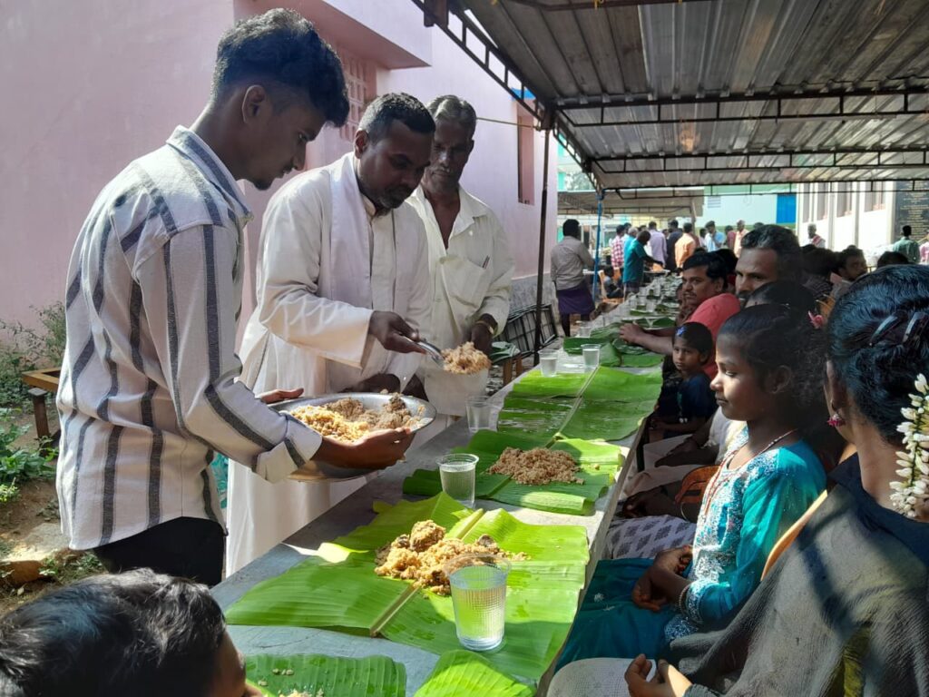 பெரியகோட்டை அருகே உள்ள கோம்பையான்பட்டி புனித அந்தோணியார் சிற்றாலயத்தில் மத நல்லிணக்கண சமபந்தி அன்னதான விழா நேற்று நடைபெற்றது. இதையொட்டி புனித பெரிய அந்தோனியார் ஆலயத்தில் உள்ள புனிதர்கள் சொரூபங்களுக்கும், அதே பகுதியில் உள்ள