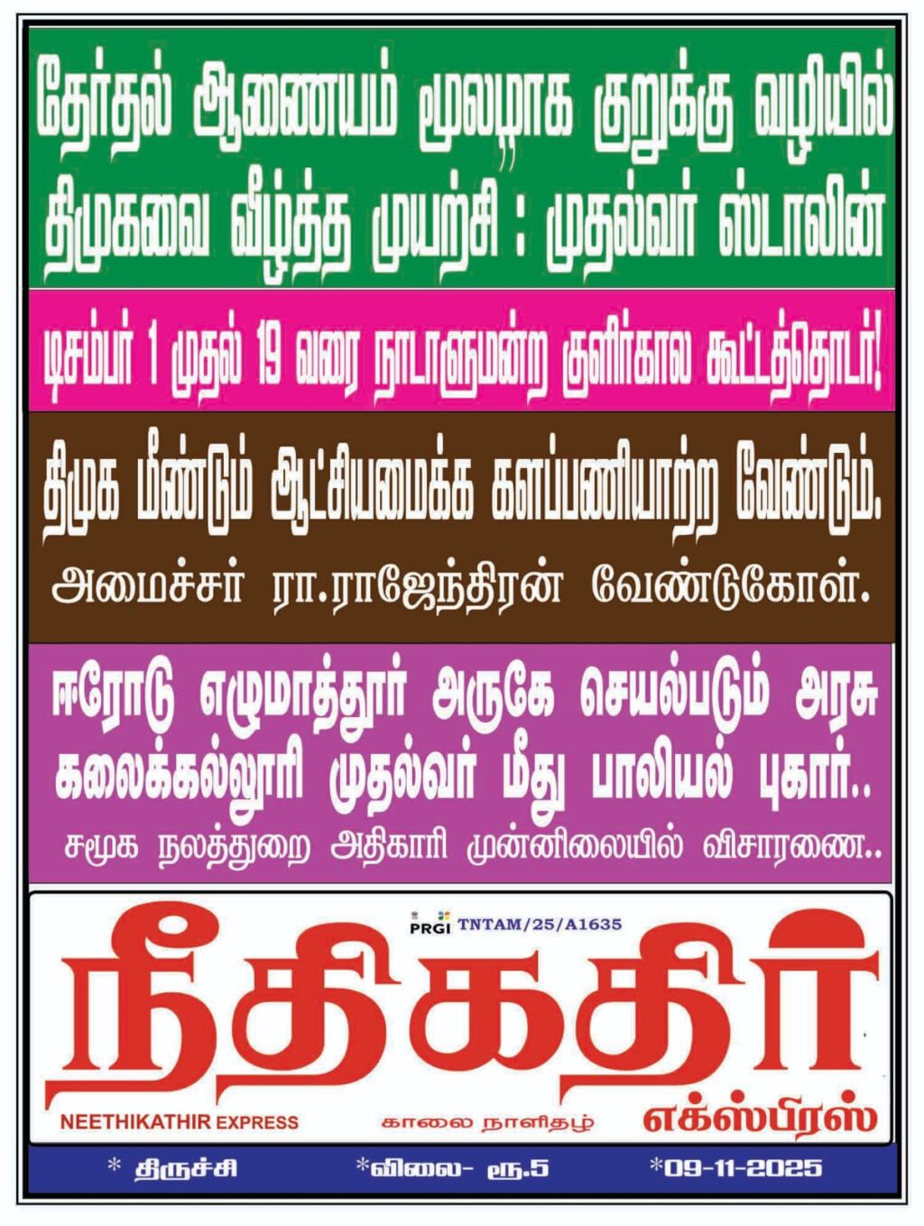 E-Paper 9-11-2025 Post navigation Previous Flash NewsNext சேலம்:குடிசை மாற்று வாரியம் அலுவலகத்தில் கண்டன ஆர்ப்பாட்டம்! More Stories E-Paper 26-02-26 E-Paper 25-02-26 E-Paper 24-02-26
