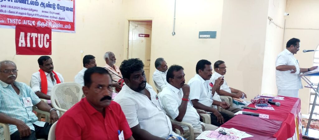 திருச்சி கருமண்டபத்தில் உள்ள தனியார் திருமண மஹாலில் அரசு போக்குவரத்து கழக திருச்சி மண்டல ஏஐடியூசி சங்கத்தின் ஆண்டு பேரவை கூட்டம் நடைபெற்றது