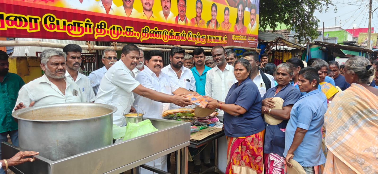 திண்டுக்கல் மாவட்டம் வடமதுரை காந்தி சிலை அருகில் வடமதுரை பேரூர் திமுக சார்பில் துணை முதல்வர் உதயநிதி பிறந்தநாள் விழா காந்தி சிலை அருகில் பேரூர் கழகச் செயலாளர் மெடிக்கல் கணேசன் தலைமையில் கொண்டாடப்பட்டது விழாவில் தூய்மை பணியாளர் உட்பட நூறு பெண்களுக்கு சேலை வழங்கி அனைவருக்கும் மதிய உணவு வழங்கப்பட்டது விழாவில் பேரூர் துணைச் செயலாளர் வீரமணி ,அழகுமலை, கார்த்திகேயன், கவுன்சிலர்கள் சௌந்தர்ராஜ், சுப்பிரமணி, வேல்முருகன், விஜயா, மற்றும் மாவட்ட மாணவர் இளைஞர் அணி நிர்வாகிகள் வார்டு செயலாளர் நிர்வாகிகள் கலந்து கொண்டு சிறப்பித்தனர் விழாவிற்கான ஏற்பாடுகளை வார்டு கவுன்சிலருமான நகரச் செயலாளர் கணேசன் செய்திருந்தார்.