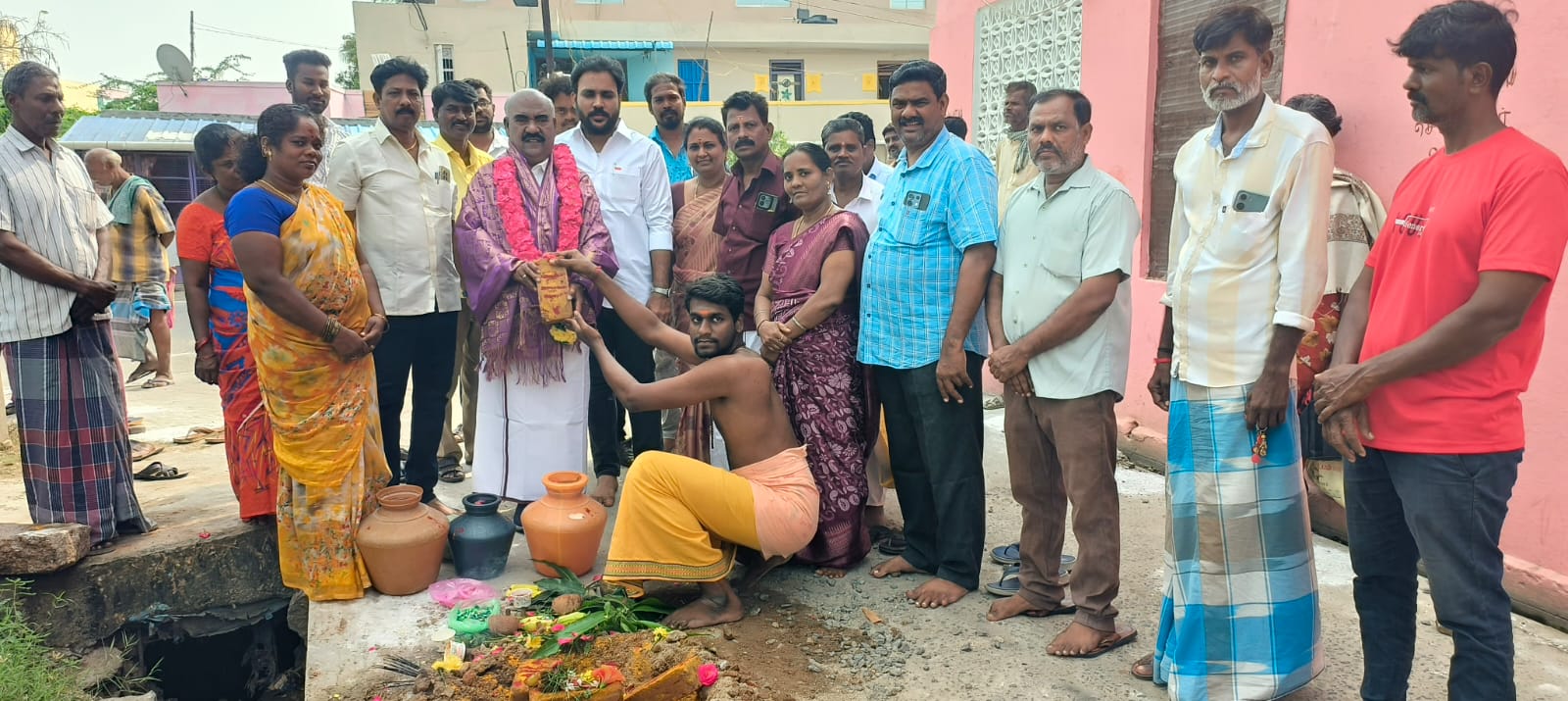 விழுப்புரம் மாவட்டம் செஞ்சி பேரூராட்சியில் உள்ள வ.உ.சி தெருவில் பொது நிதி திட்டத்தின் கீழ் 17.70 லட்சம்ரூபாய் மதிப்பீட்டில் புதிய வடிகால்வாய் காலுடன், சிமெண்ட் சாலை அமைக்கும் பணிக்கு பூமி பூஜை விழா நடைபெற்றது.
