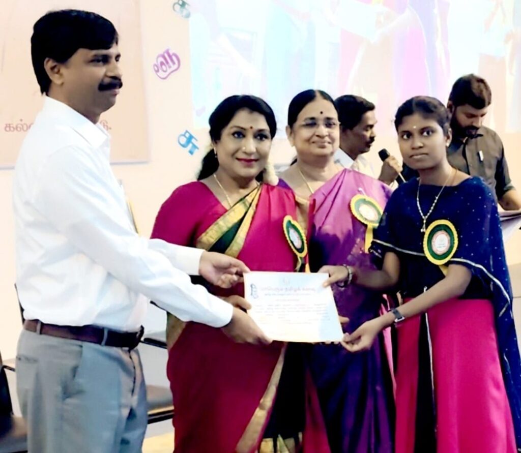 ஈரோடு மாவட்டம் சித்தோட்டில் செயல்படும் அரசு பொறியியல் கல்லூரியில் நடைபெற்ற, மாபெரும் தமிழ் கனவு, தமிழ் மரபு மற்றும் பண்பாட்டு பரப்பரை நிகழ்ச்சியில் பங்கேற்ற கல்லூரி மாணவ, மாணவிகளின் தமிழ் பெருமைகள் குறித்த வாசிப்பு குறித்த தெளிவுரை வாசிப்பவர்கள் குறித்த, தெளிவுரை வழங்கியவர்கள் மற்றும் கேள்வி நாயகன், கேள்வி நாயகிகள் ஆகியோர்களுக்கு பாராட்டு தெரிவித்து புத்தகங்கள், பாராட்டு சான்றிதழ்கள் ஆகியவற்றை ஈரோடு ஆட்சியர் ச. கந்தசாமி வழங்கினார். உடன் சித்தோடு அரசு பொறியியல் கல்லூரி முதல்வர் முனைவர் சாரதா, சொற்பொழிவாளர் பத்மஸ்ரீ முனைவர் நர்த்தகி நடராஜன் ஆகியோர் உள்ளனர்.