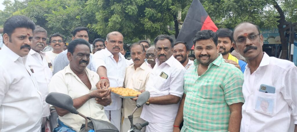 திருச்சி மாவட்டம், மணப்பாறையில் தமிழ்நாடு துணை முதலமைச்சர் உதயநிதி ஸ்டாலின் பிறந்தநாள் விழாவை பொதுமக்களுக்கு இனிப்பு வழங்கி கொண்டாடினர். பேருந்து நிலையம் அருகே முன்னாள் ஒருங்கிணைந்த மாவட்ட இளைஞரணி துணைச்செயலாளரும் முன்னாள் மாவட்ட ஊராட்சிக்குழு உறுப்பினருமான A.பாலசுப்பிரமணியன் (எ)பாலா தலைமையில் நடைபெற்ற நிகழ்ச்சியில் பாதசாரிகள், வாகனங்களில் செல்பவர்களுக்கும் இனிப்புகள் வழங்கியதுடன் பேருந்தில் பயணம் செய்பவர்களுக்கும் ஓட்டுனர் மற்றும் நடத்துனர்களுக்கும் இனிப்புகள் வழங்கினர். இதில் முன்னாள் நகர்மன்ற உறுப்பினர் சரவணன் உள்ளிட்ட கட்சியினர் திரளாக கலந்து கொண்டனர்.