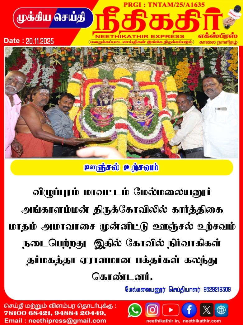 ஃபிளாஷ் நியூஸ் Flash News Post navigation Previous Flash NewsNext விழுப்புரம் மாவட்டம் பிரசித்தி பெற்ற மேல்மலையனூர் அங்காளம்மன் கோவிலில் கார்த்திகை மாத அமாவாசை முன்னிட்டு ஊஞ்சல் உற்சவம் – பல்லாயிரக்கணக்கான பக்தர்கள் சாமி தரிசனம் கூட்ட நெரிசல் தவிர்க்க புதிய முறையாக மாற்று பாதை More Stories ஃபிளாஷ் நியூஸ் Flash News ஃபிளாஷ் நியூஸ் Flash News ஃபிளாஷ் நியூஸ் Flash News
