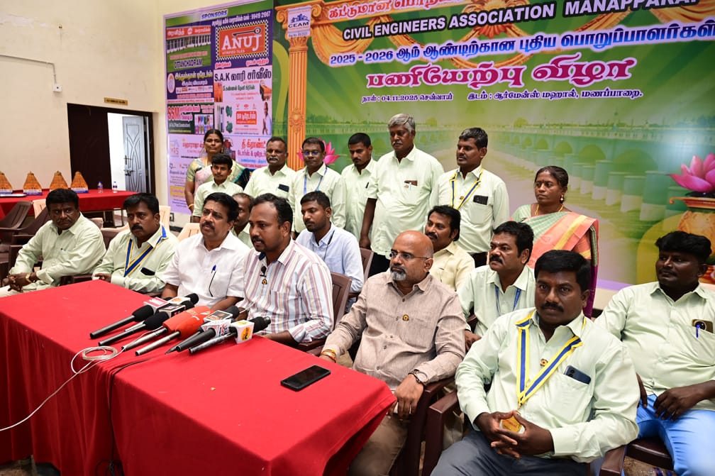திருச்சி மாவட்டம், மணப்பாறையில் கட்டுமான பொறியாளர் சங்கத்தின் புதிய பொறுப்பாளர்கள் பணியேற்பு விழா தனியார் திருமண மஹாலில் நடைபெற்றது. இதில் அச்சங்கத்தின் மாநில செயலாளர் துரைக்கண்ணன் கலந்து கொண்டு புதிய பொறுப்பாளர்களுக்கு பதவியேற்பு செய்துவைத்தார். பின்னர் அவர் செய்தியாளர்களுக்கு அளித்த பேட்டியில்,
