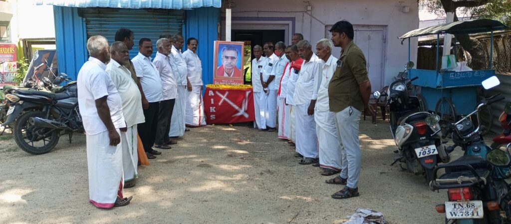 முன்னல் நகர்மன்ற உறுப்பினர் சௌக்கத் அலி ஏ.ஐ.டி.யூ.சி ஆட்டோ சங்கம் கீருஷ்ண பெருமாள் சித்திக் மணிகுமார் உட்பட சி.பி.ஐ. ஏ.ஐ.டி.யூ.சி விவசாய சங்க நிர்வாகிகள் மாலர்தூவி புகழ் அஞ்சலி செலுத்தினார்கள்