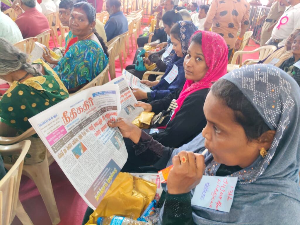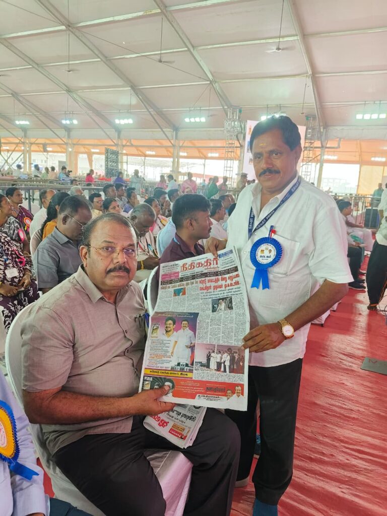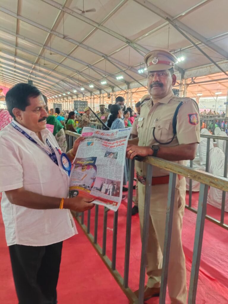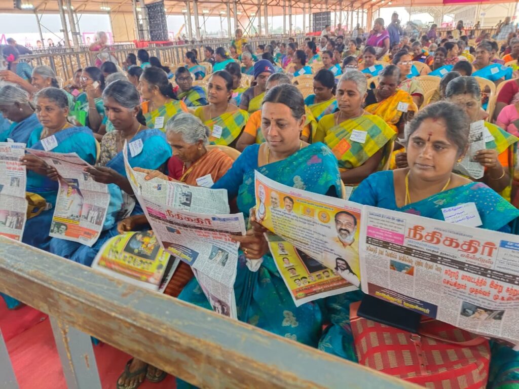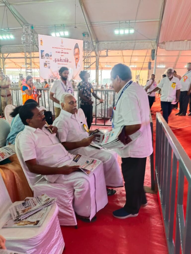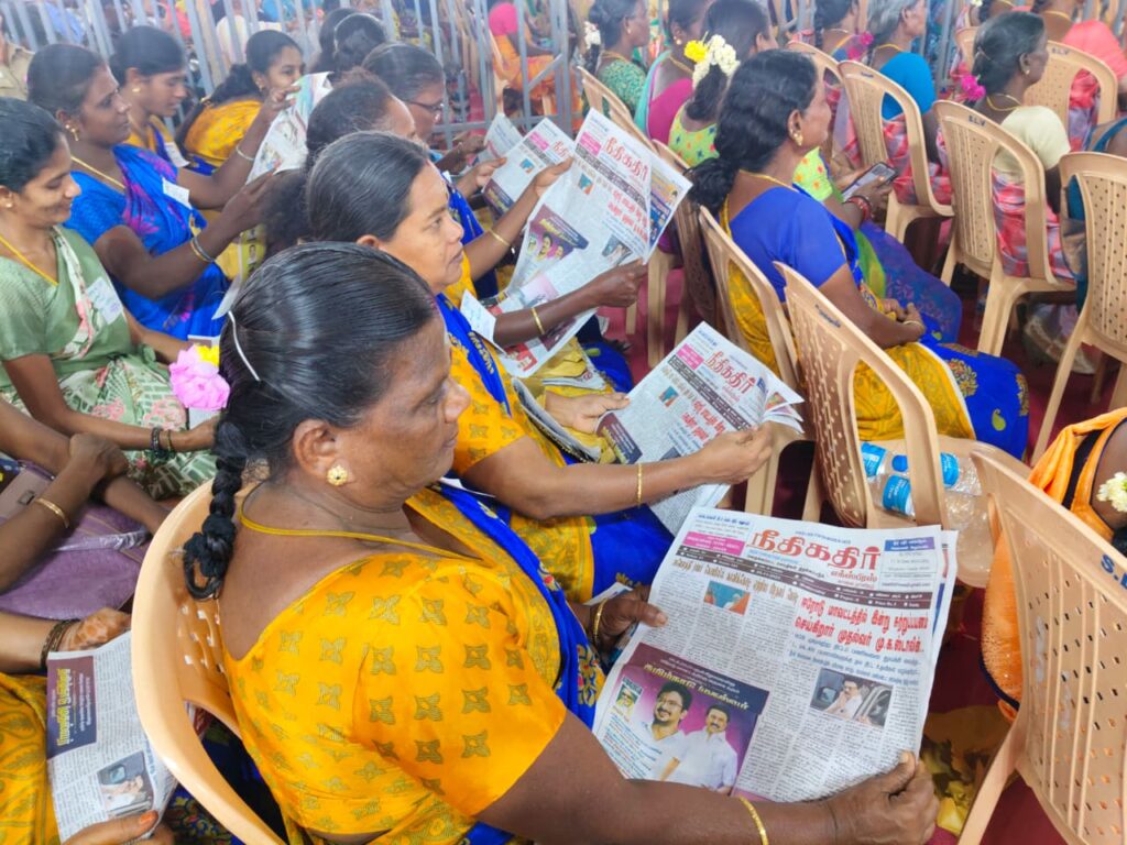 ஈரோட்டில் நடைபெற்ற தமிழக முதல்வர் மு க ஸ்டாலின் கலந்து கொண்ட அரசு விழாவில் நமது நீதி கதிர் எக்ஸ்பிரஸ் நாளிதழை ஆர்வமுடன் வாங்கி படிக்கும் பொதுமக்கள்.